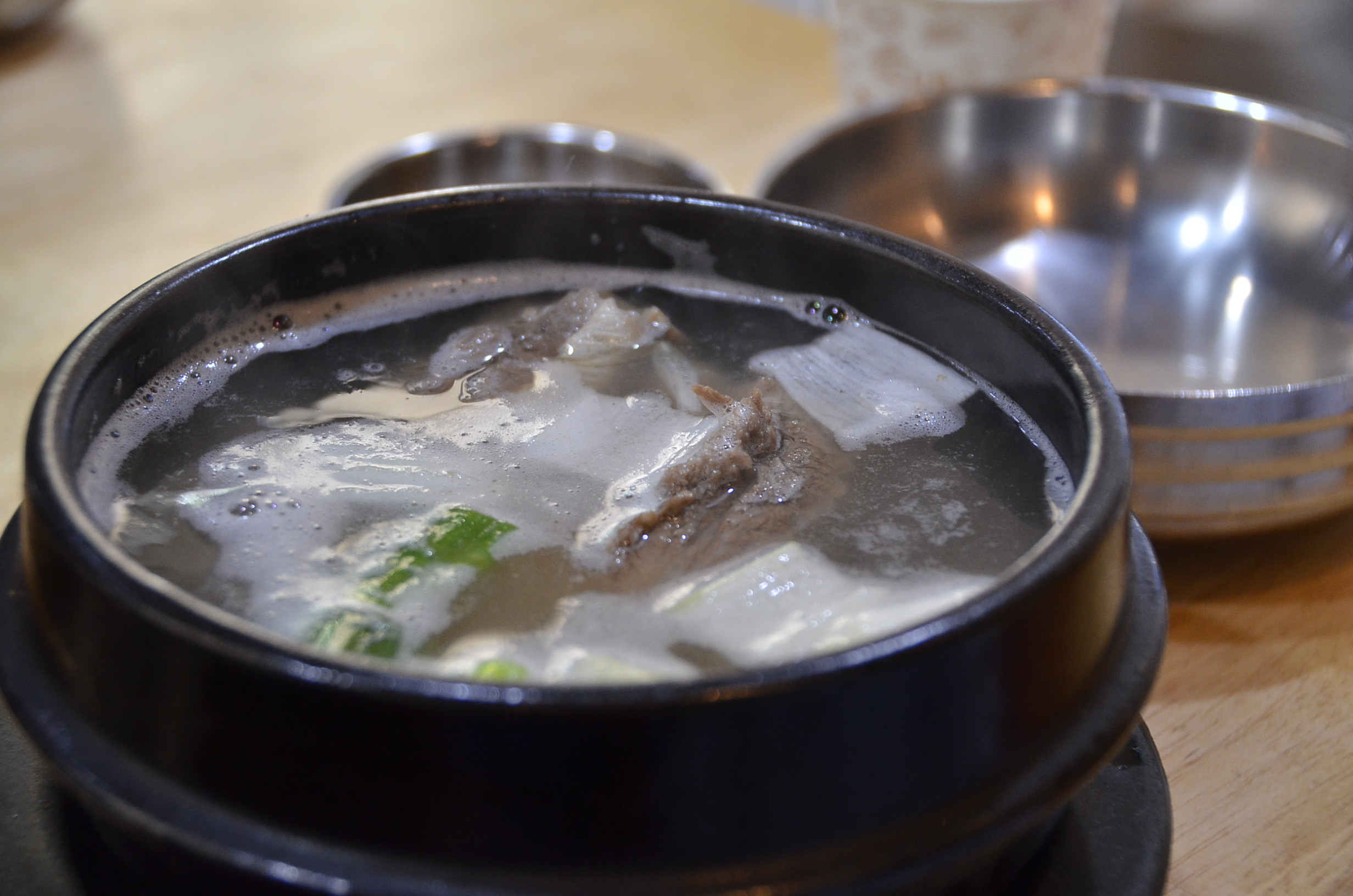 파를 넣기전의 아들앞에 놓인 뽀얀 설렁탕입니다. 저는 이 설렁탕을 너무나 사랑합니다. 깍두기 국물도 넣어먹어도 되고 김치도 넣어먹어도 되는 무엇이든 잘어울리는 설렁탕입니다.