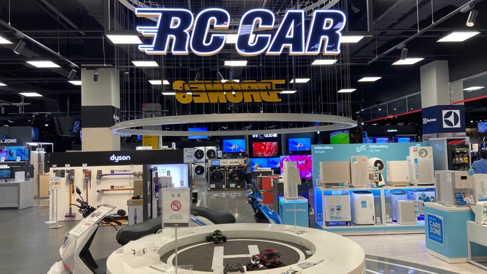 이제 필요한 제품들을 구입을 했으니 계산을 하면서 짧은 일렉트로 마트 투어를 합니다. 마음은 전자기기를 하나 하나 다 둘러보고 가고 싶은데 그러하지 못합니다. 눈에 띄는 RC CAR(Radio Controlled Card: 무선 자동차) 코너에 발걸음이 멈춰집니다. 직접 시운전을 할 수 있도록 작게나마 필드까지 있는 것이 완전 매력적인 장소입니다.