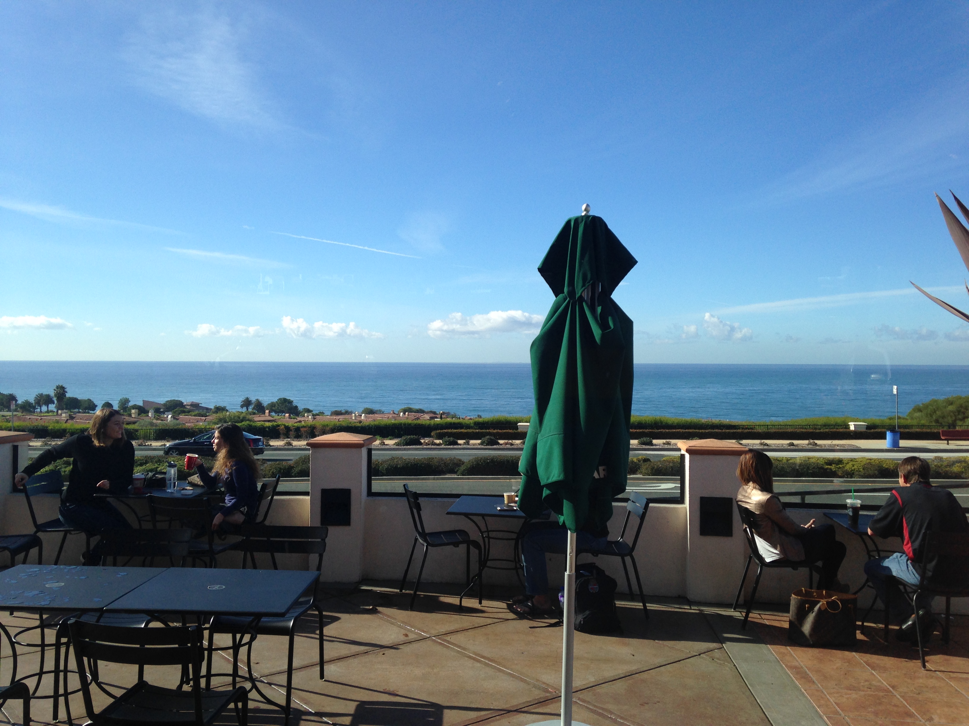 출장 온 부하직원 스트레스 줄이기 일단계: 태평양 바다를 보며 스타벅스에서 커피 한잔
