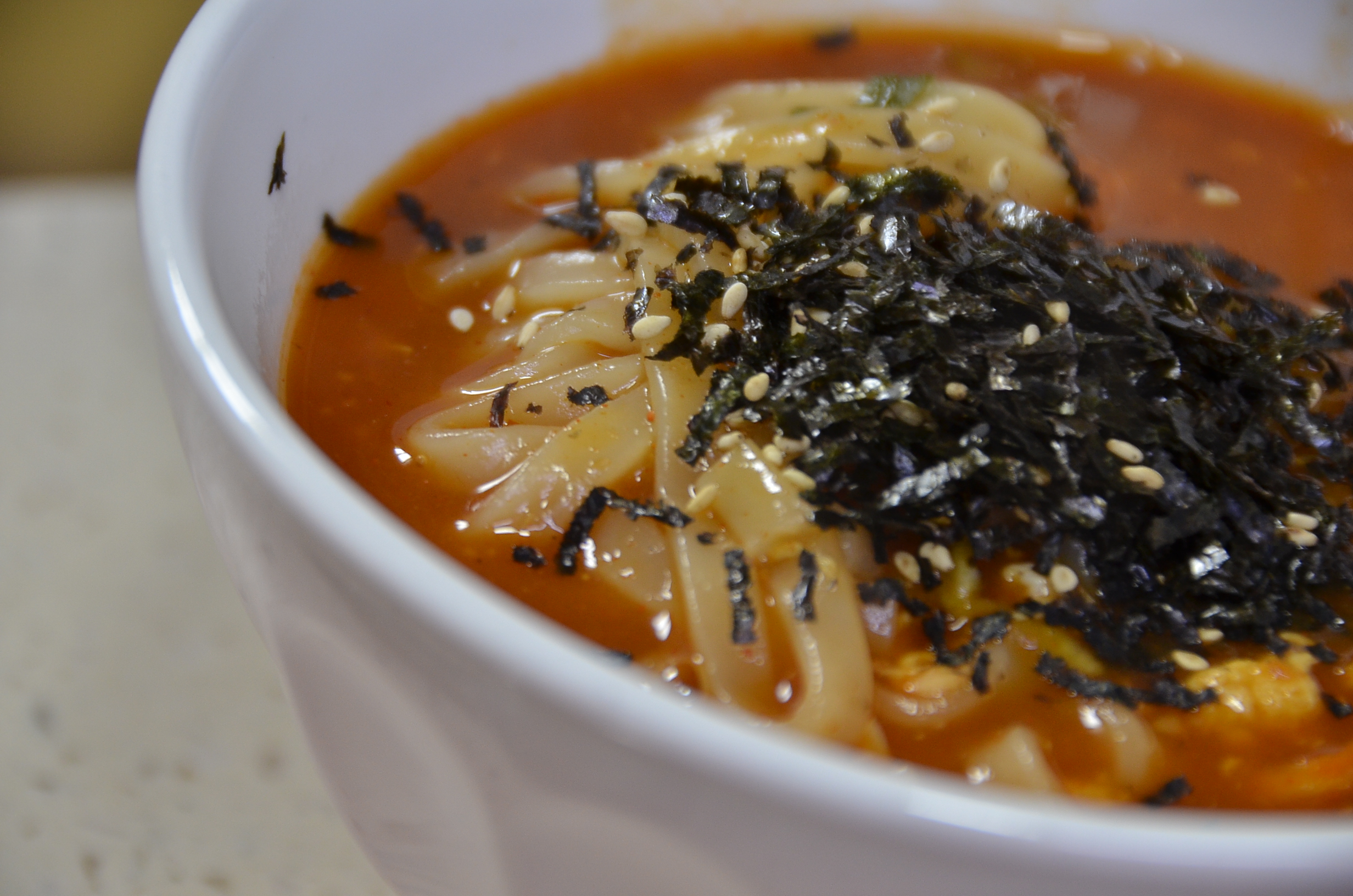 3. 마지막으로 참깨와 김고명을 뿌리고 맛있는 장칼국수를 즐깁니다.