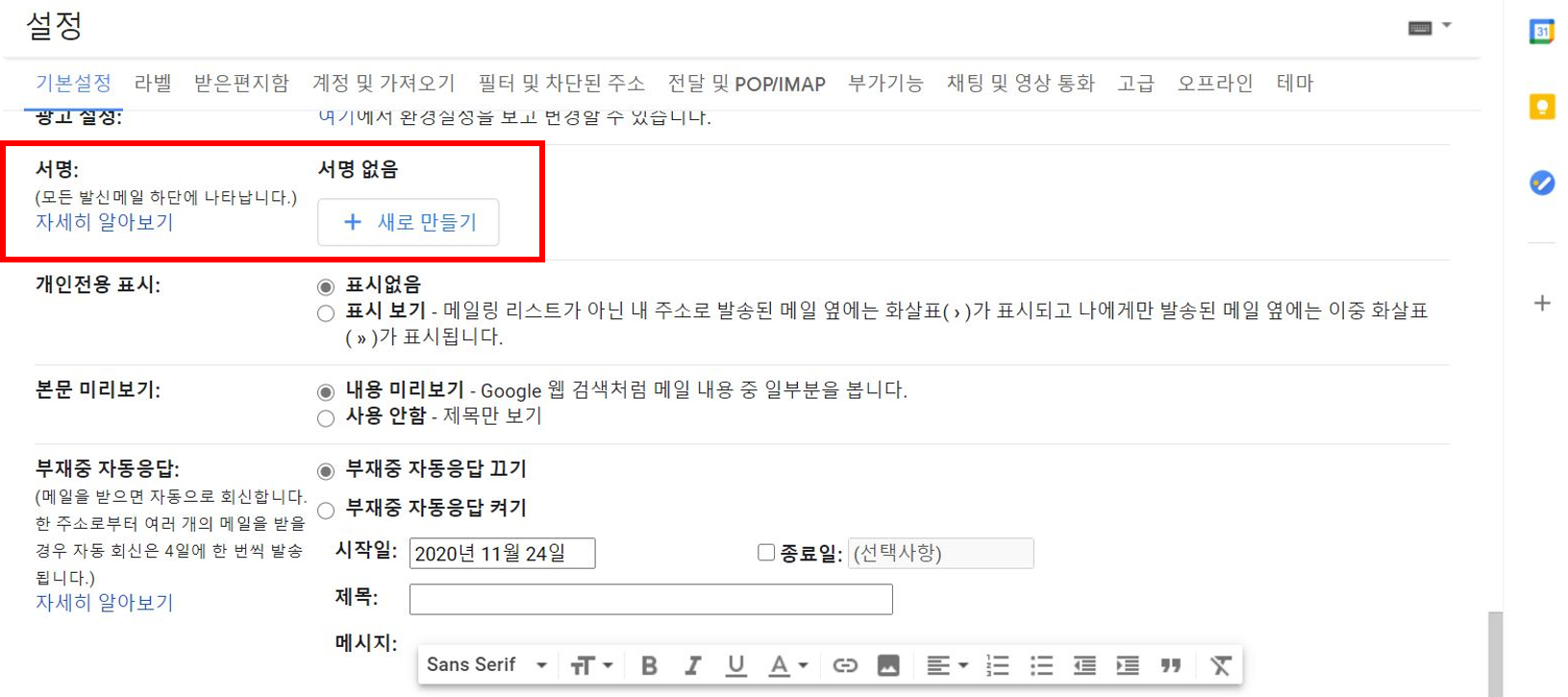 회사 메일 서명 세팅: