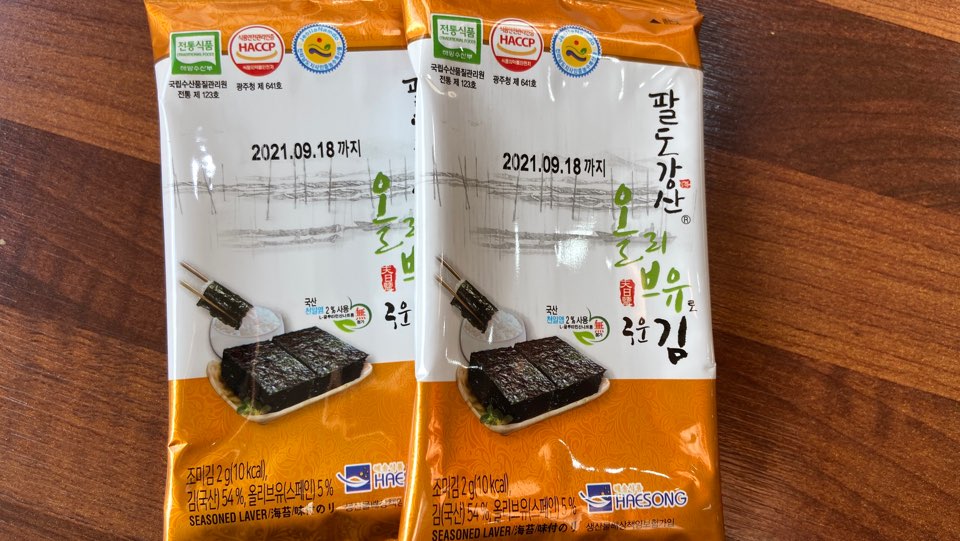 ▼ 친절한 식당 직원께서 주신 올리브유 구운김 두봉입니다. 개인당 2개씩 나누어 주었는데 그 양이 정말로 절묘하게 딱 잘 맞습니다.