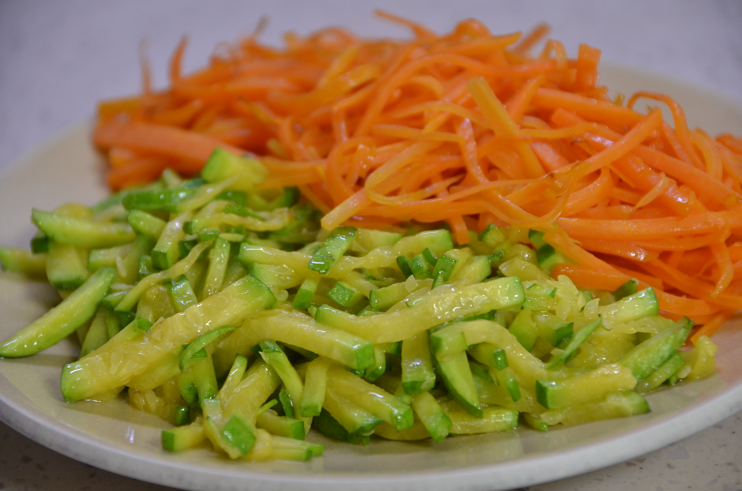 당근은 채칼을 이용하여 잘게 잘라줍니다.