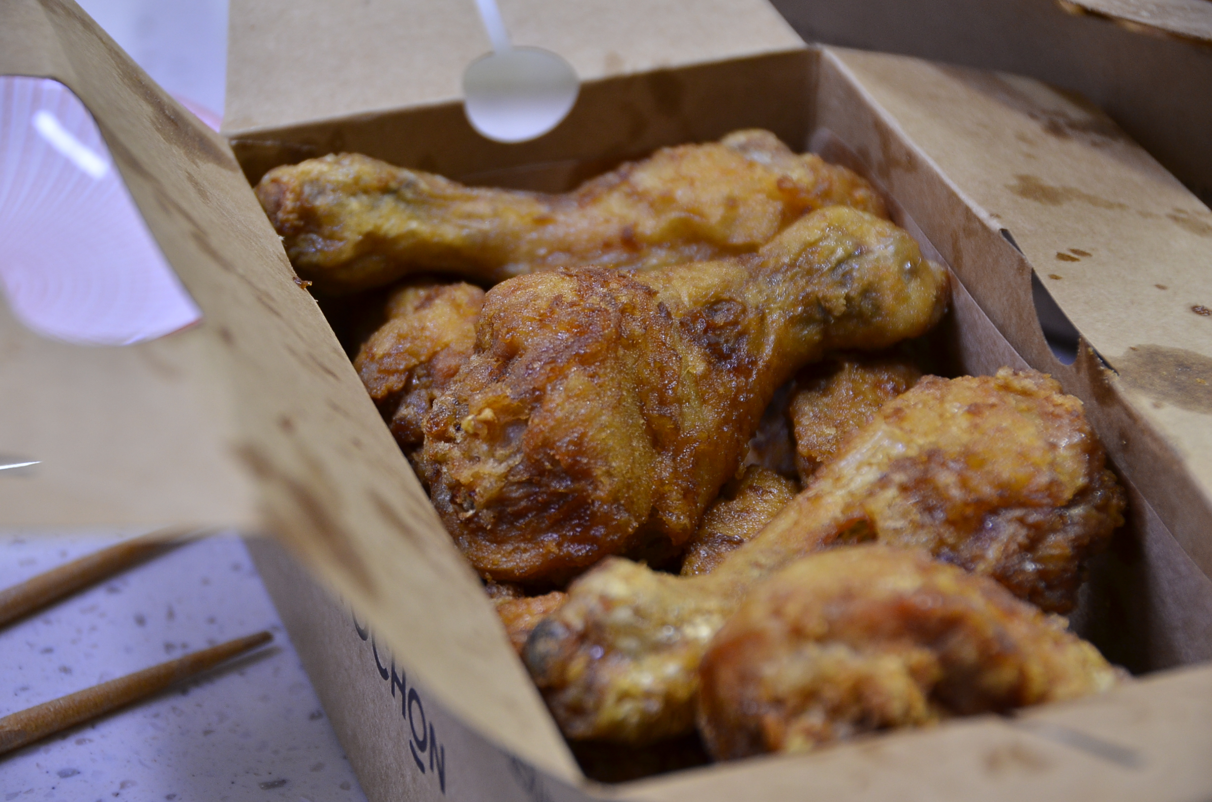 하지만 치킨을 너무나 사랑하는 아내와 아들 녀석은 쉴 새 없이 손을 움직여 치킨박스를 클리어를 해버립니다.