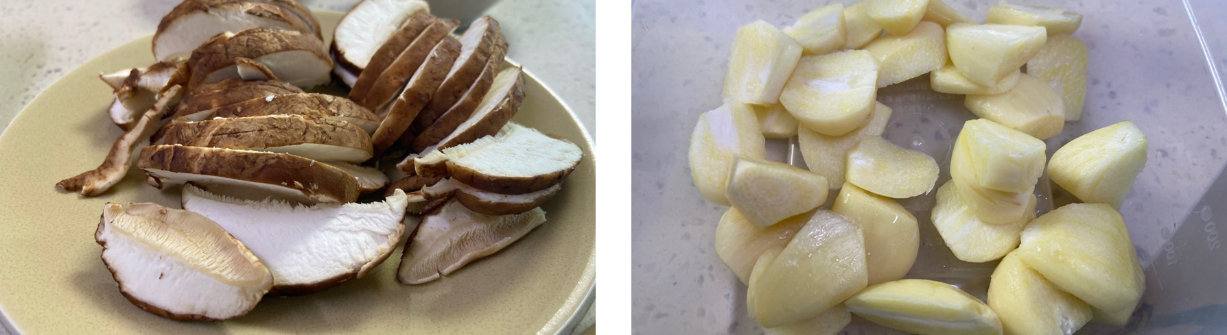 ▼ 함께 먹으면 좋은 마늘과 표고버섯입니다.