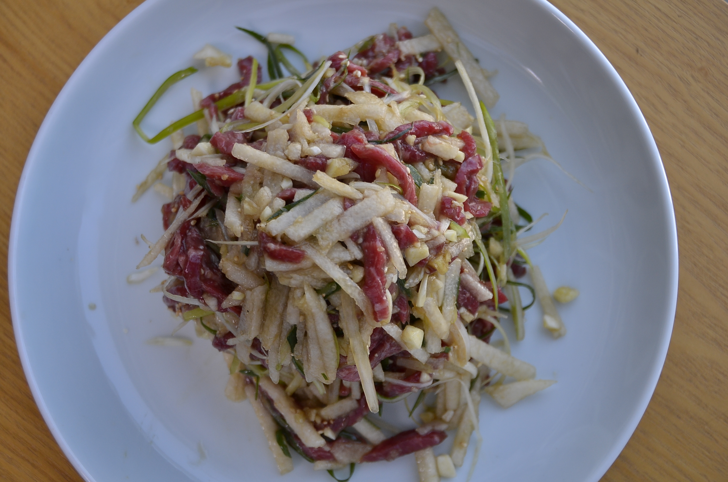 완성된 저희 집 특식 육회무침입니다.