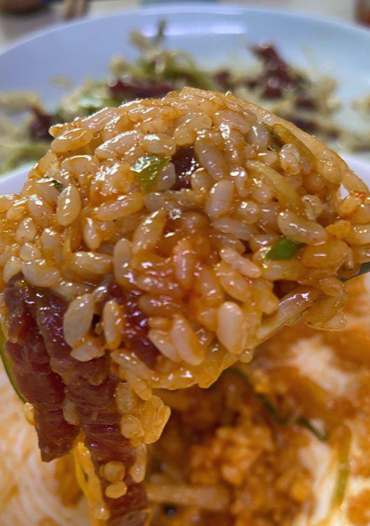 맛있는 육회비빔밥 크게 한술 뜬 저의 밥 수저입니다.