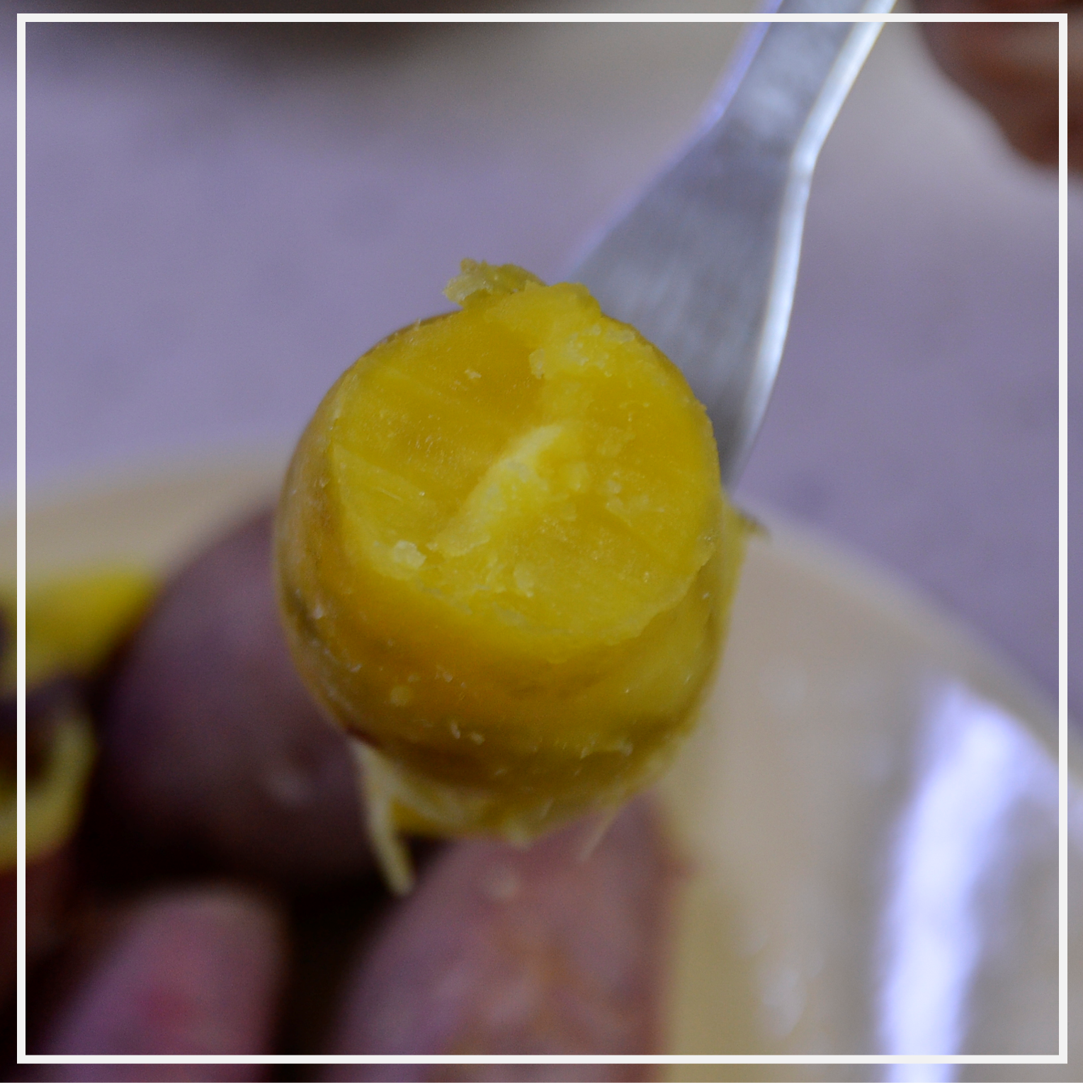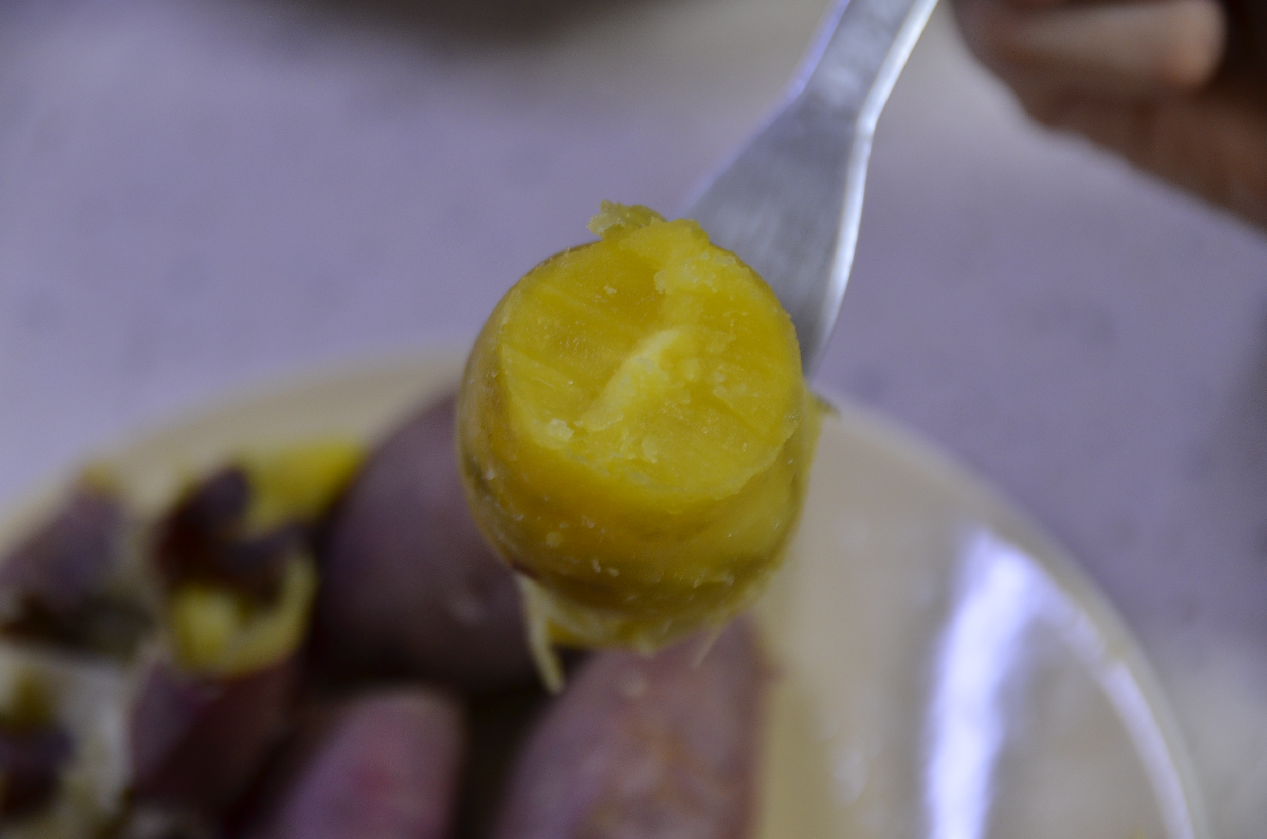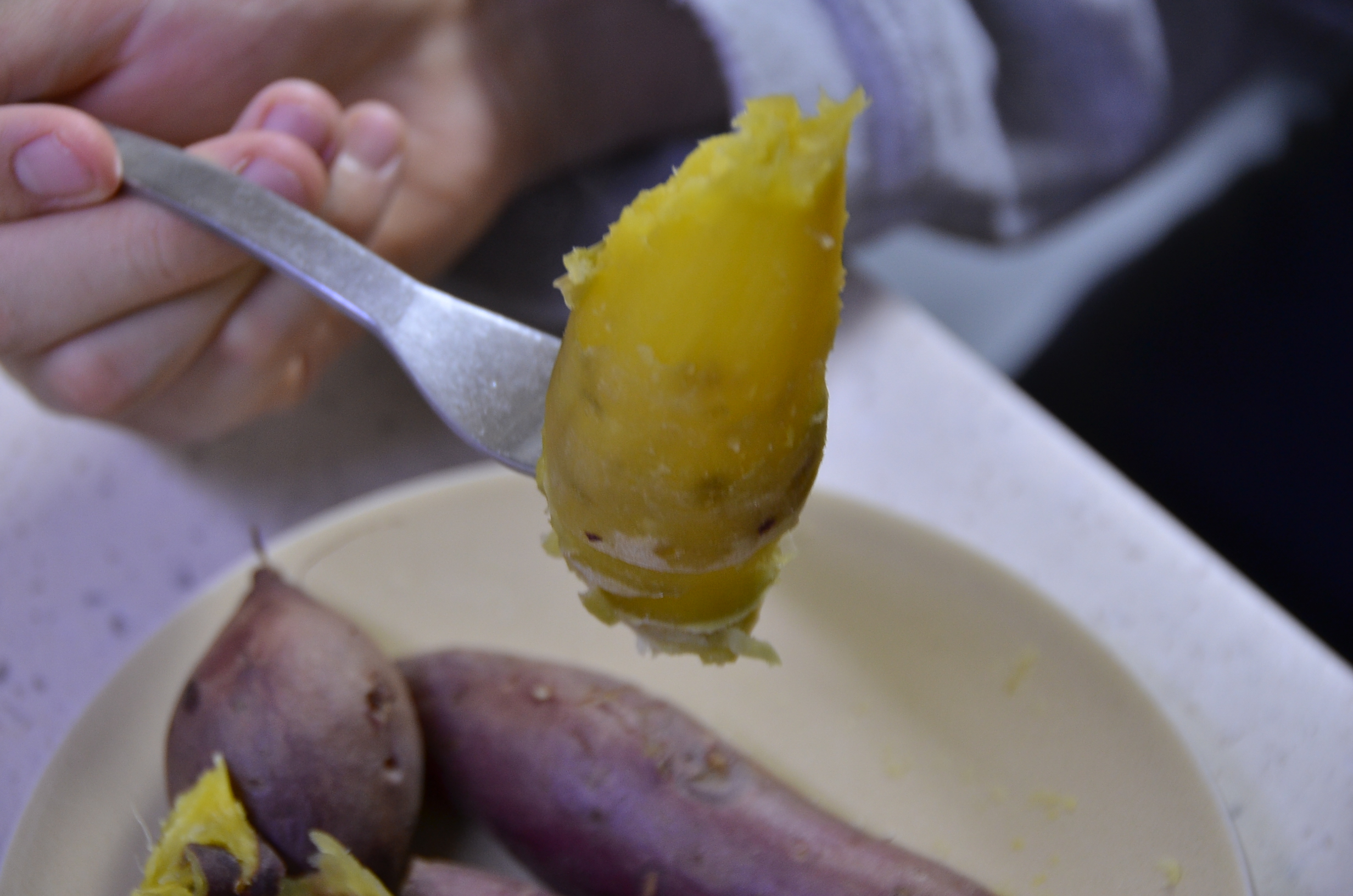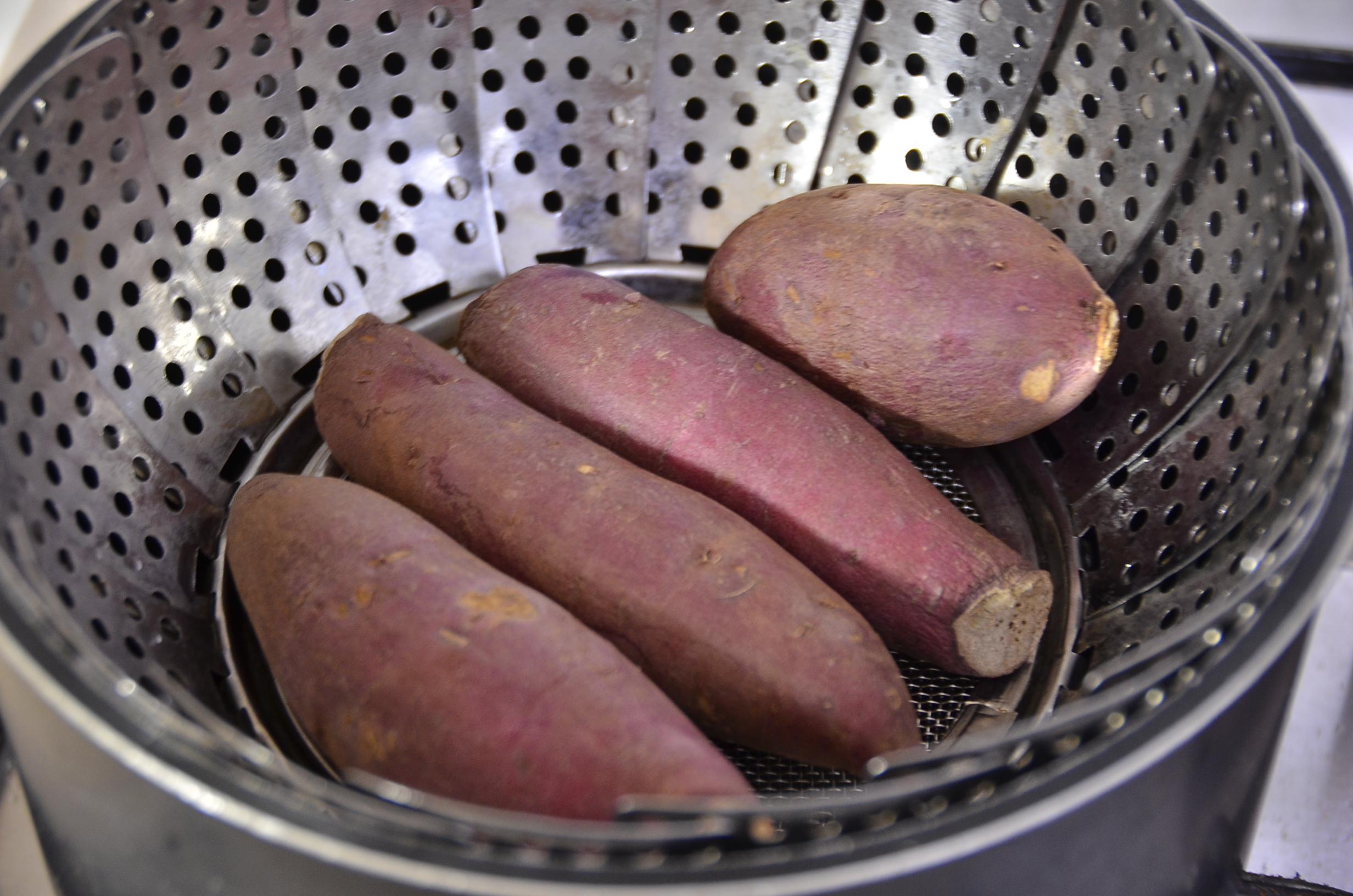 이럴 때는 젓가락 하나를 가지고 고구마를 찔러봅니다. 고구마가 부드럽게 또 자연스럽게 잘 들어가면 알맞게 잘 쪄진 겁니다.