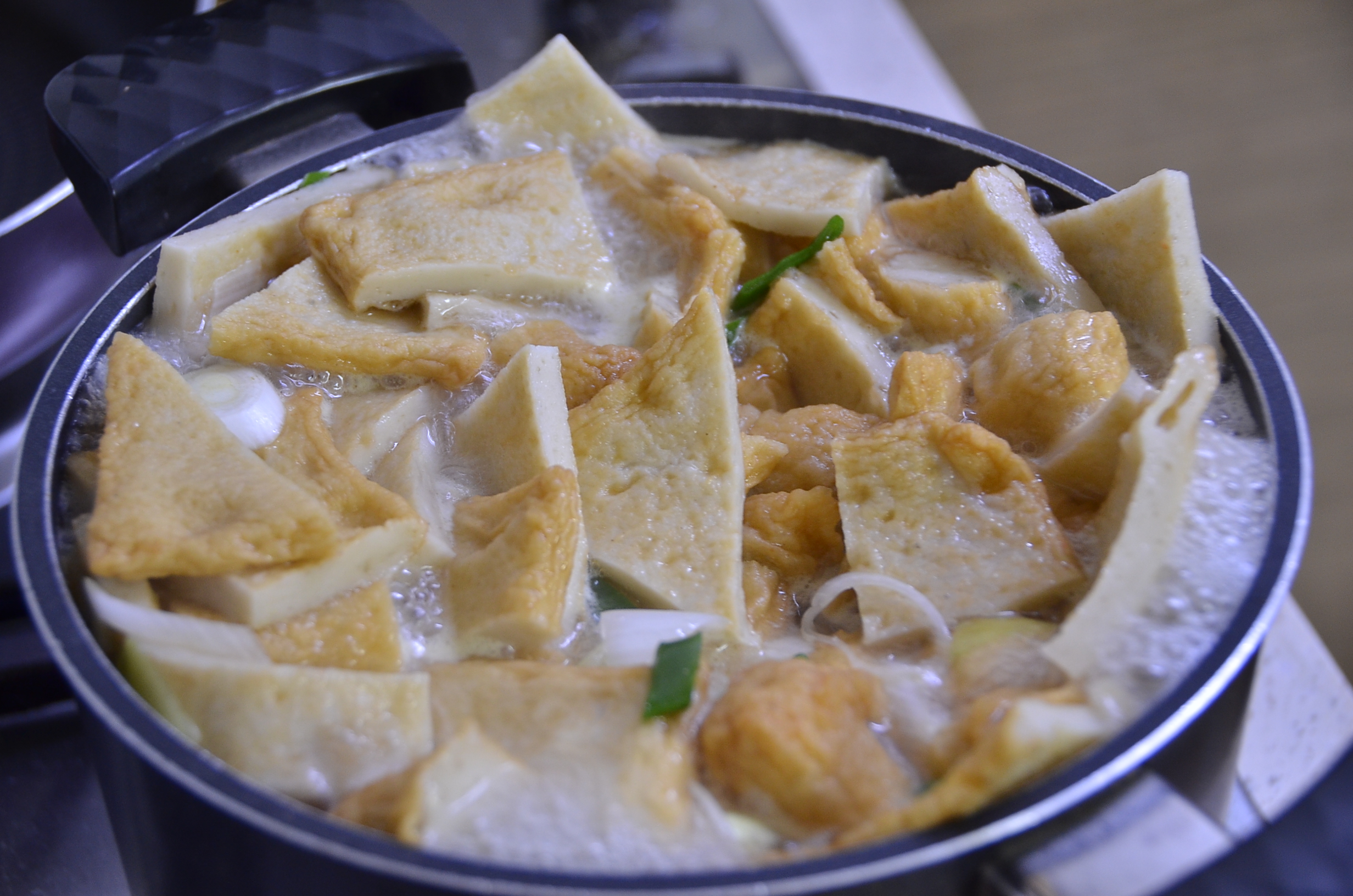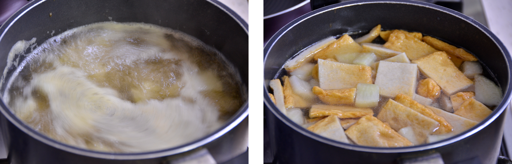 모든 재료가 한 곳에 모여 끓으며 맛을 서로 조화하고 있는 단계입니다. 국물 맛을 보니 속이 바로 시원해집니다. 뜨거운 어묵 국물을 먹었는데 시원한 느낌이 드는 마법 같은 일이 벌어집니다.