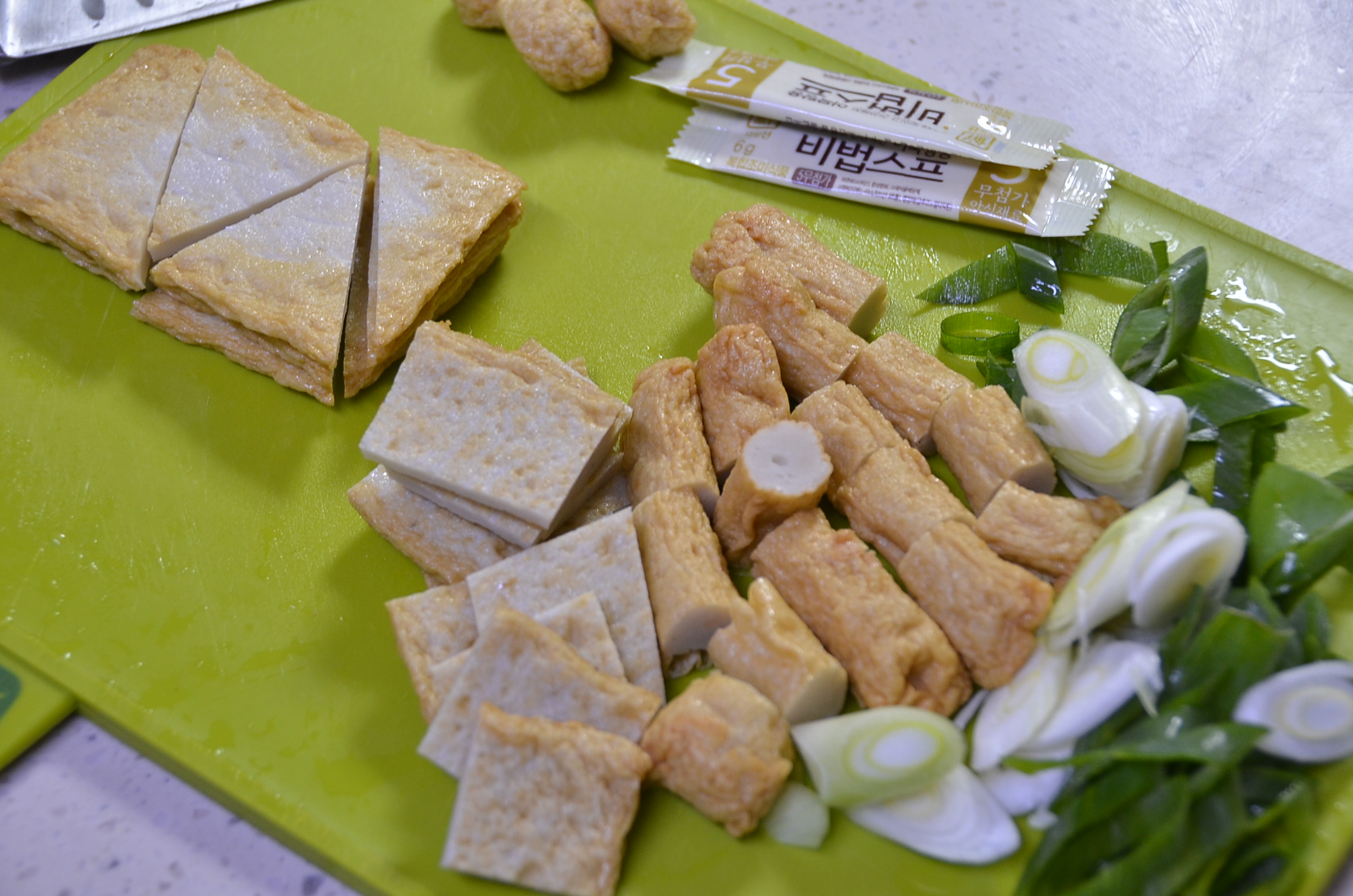 파도 적당 크기로 잘라주고 어묵도 먹기 좋은 크기로 잘라줍니다.