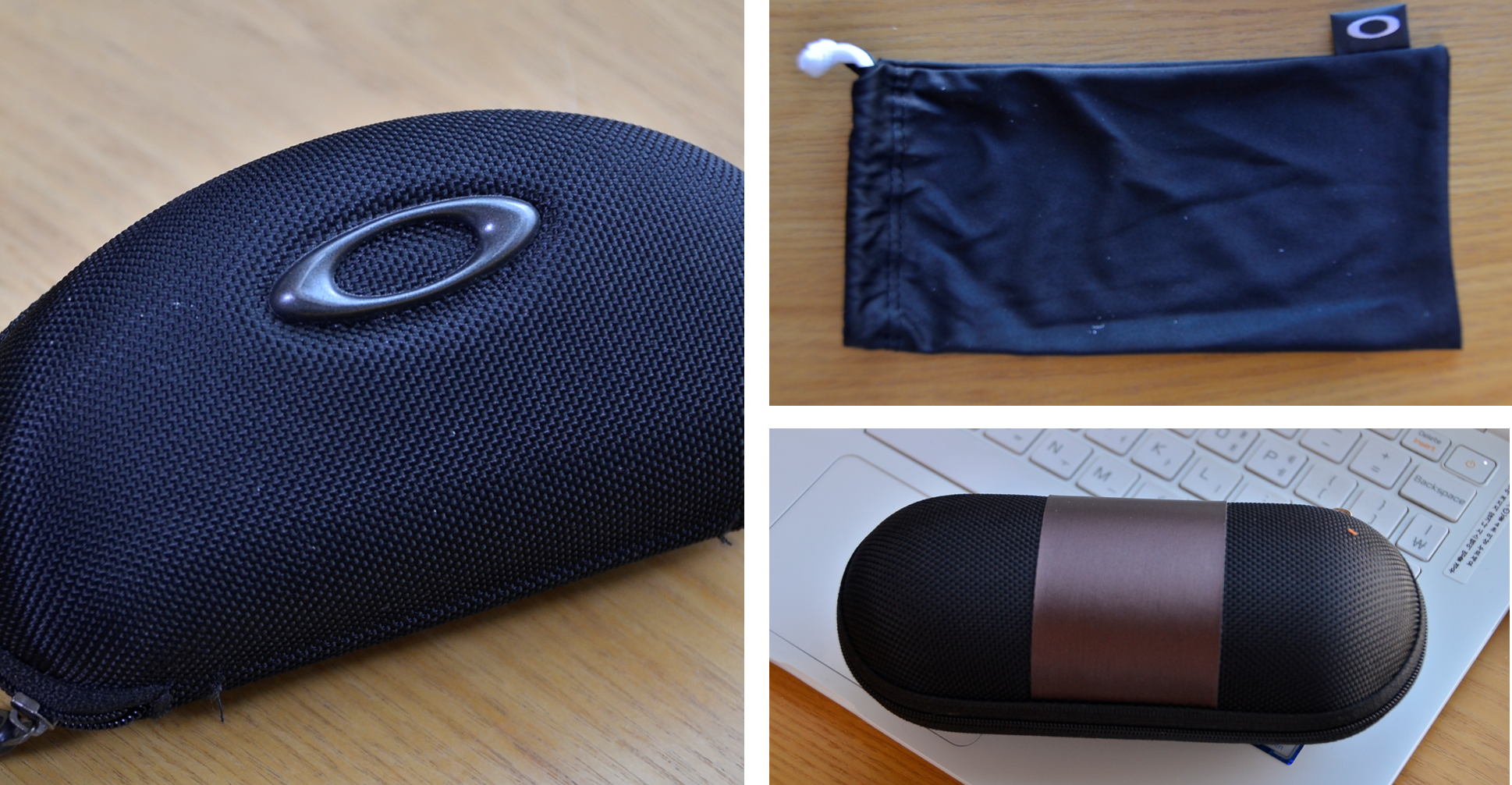 아쉬운 점 하나는 오클리 선글라스 구입할 때는 아래 좌측의 사진과 같이 오클리 케이스가 지급이 되지 않는다고 합니다. 우측 사진 상단과 같이 오클리 주머니 백을 주는 것이 아쉬웠지만, 친절한 모두아이 직원분이 모두아이 자체 선글라스 케이스를 줍니다. 거기다 플러스 제 잃어버린 레이밴 안경케이스를 담을 수 있도록 하나 더 서비스를 주시네요.