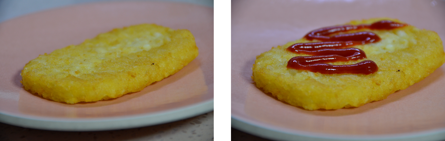 해쉬브라운에 마법 소스 캐찹을 뿌려줍니다.