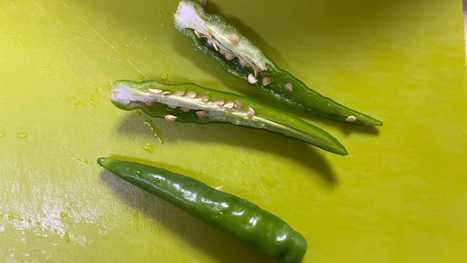 청양고추도 길고 얇게 잘라 부산어묵과 잘 어울리도록 조리하려고 합니다.