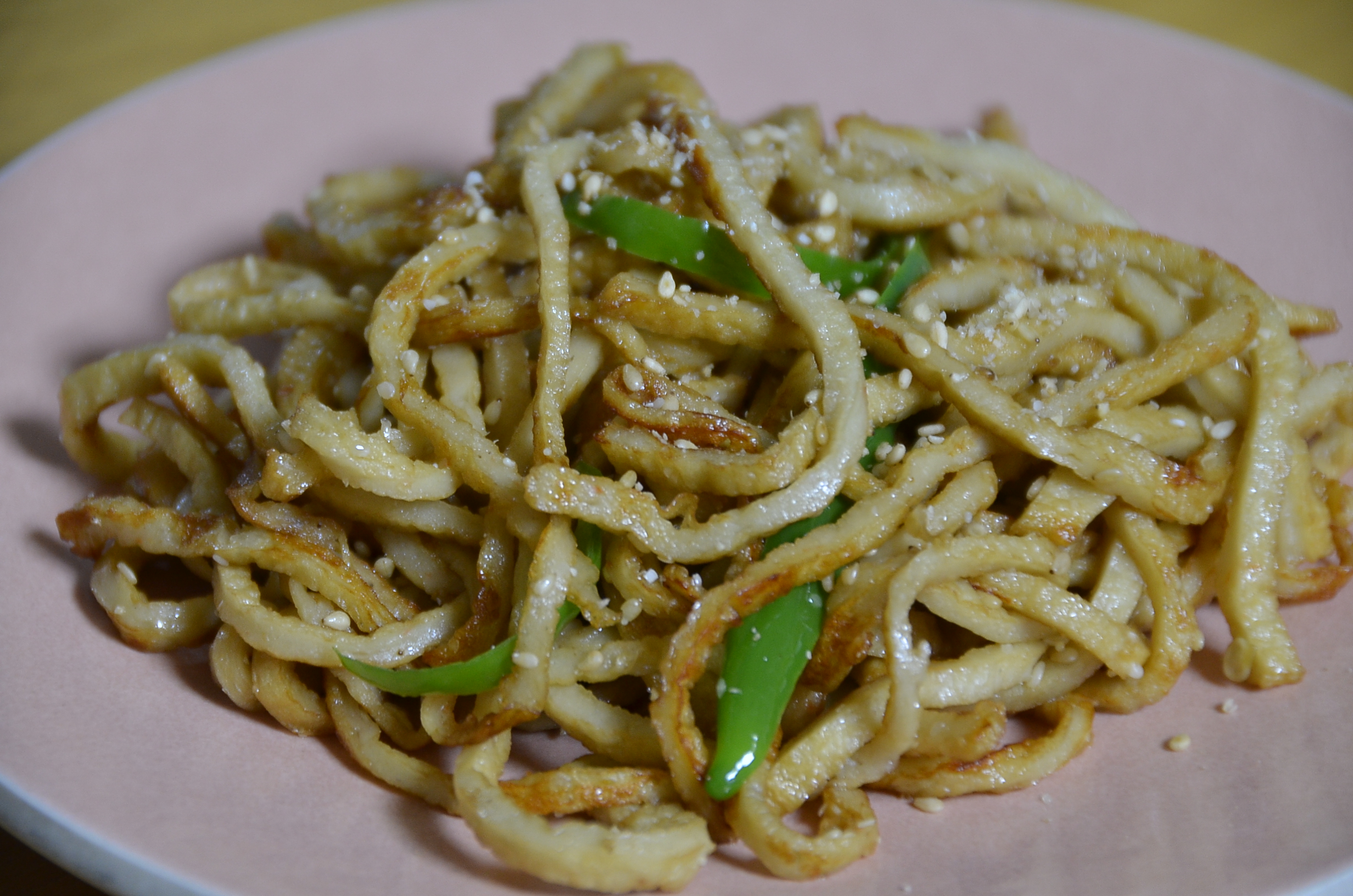이번 어묵 컨셉은 얇게 자를 어묵국수 볶음 느낌입니다.