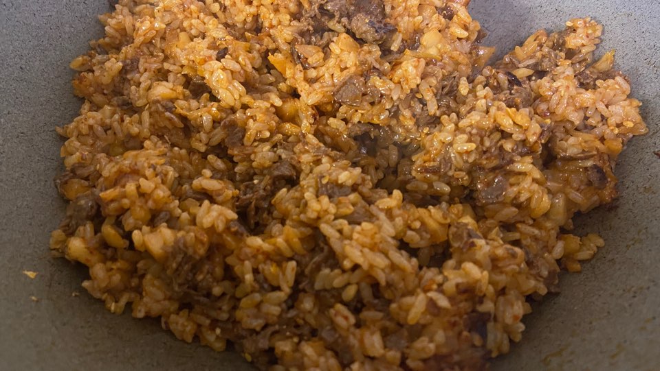 불맛을 가미하기 위하여 필수 작업입니다. 그 후에 쌀밥을 함께 넣고 볶아줍니다.