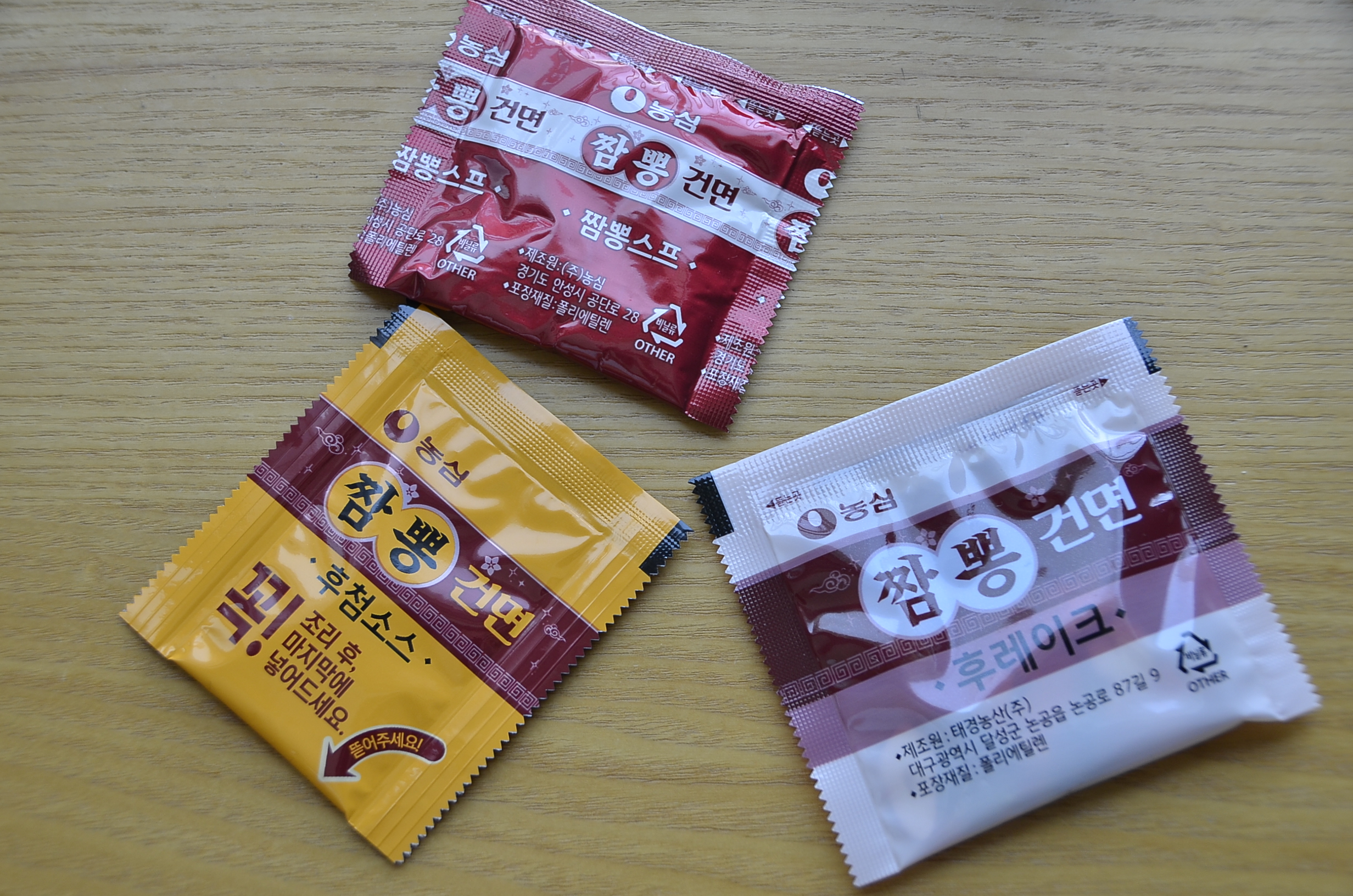 짬뽕건면에는 아래와 같이 세개의 스프가 들어있습니다.