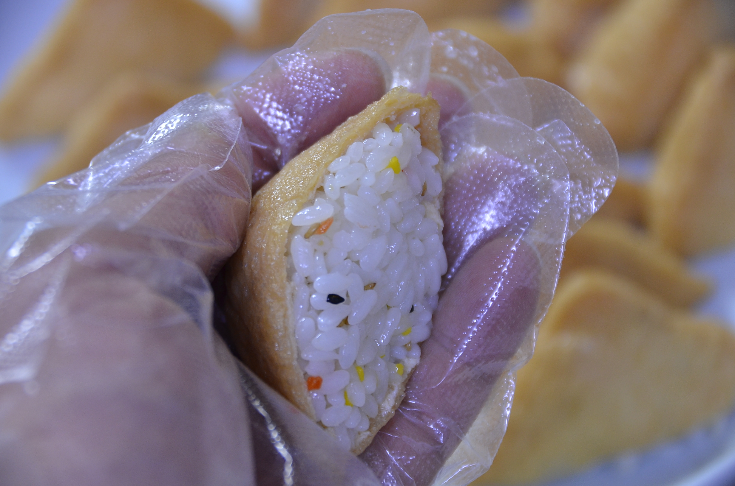 두툼하게 만들어진 밥을 머금은 유부가 참 맛이 좋아 보입니다.