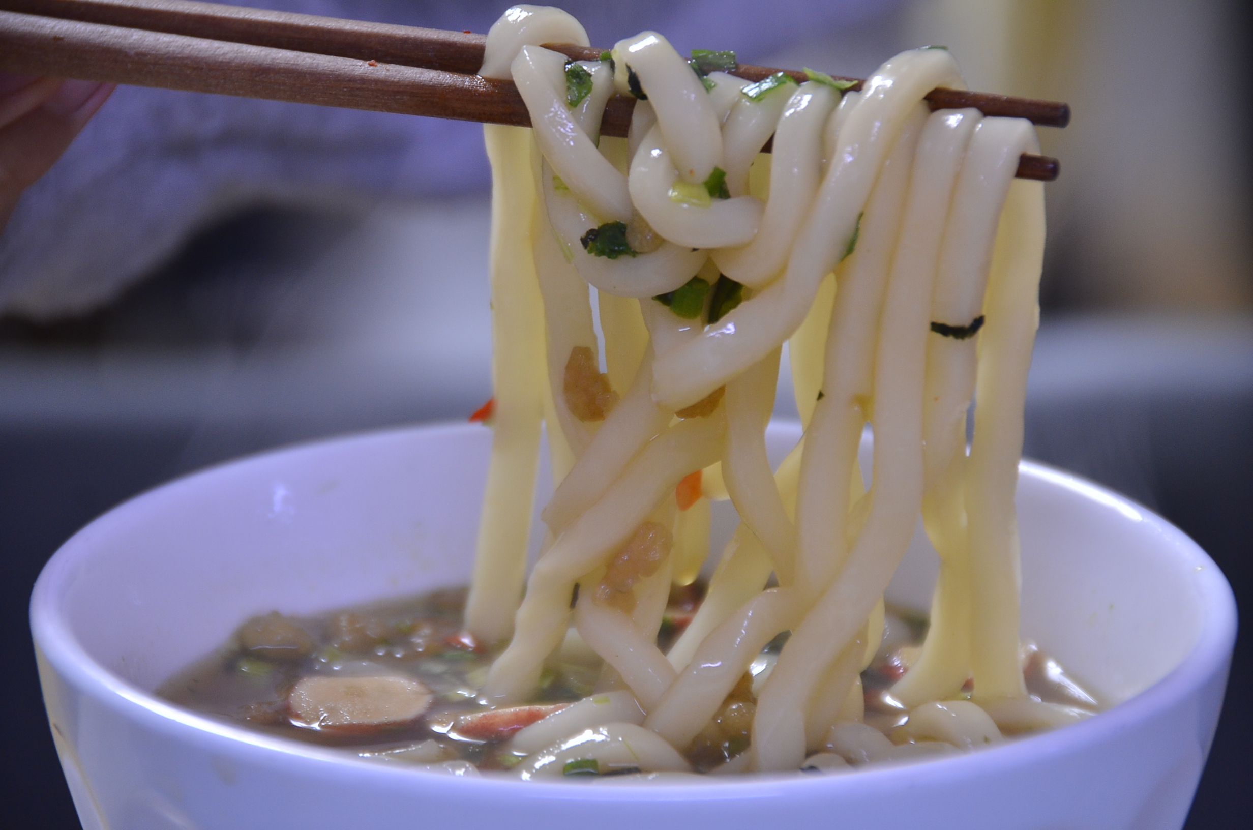 기름에 튀기지 않은 생생면으로 정통 우동의 면이 느껴집니다.