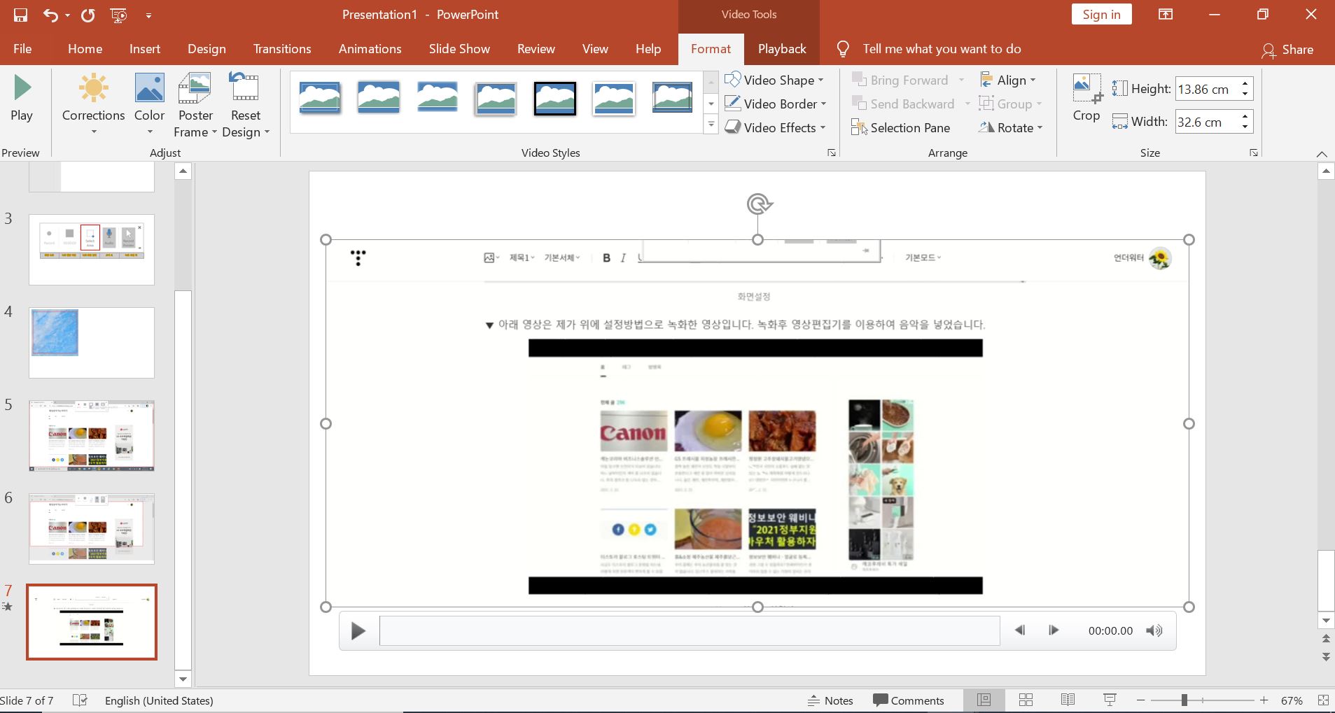 ▼ 위에 설명드린 방법으로 제가찍은 사진모음 폴더에 있는 몇 장의 사진으로 영상을 만들어봤습니다. 파워포인트로도 아래 사진과 같이 좋은 영상을 녹화할 수 있습니다.