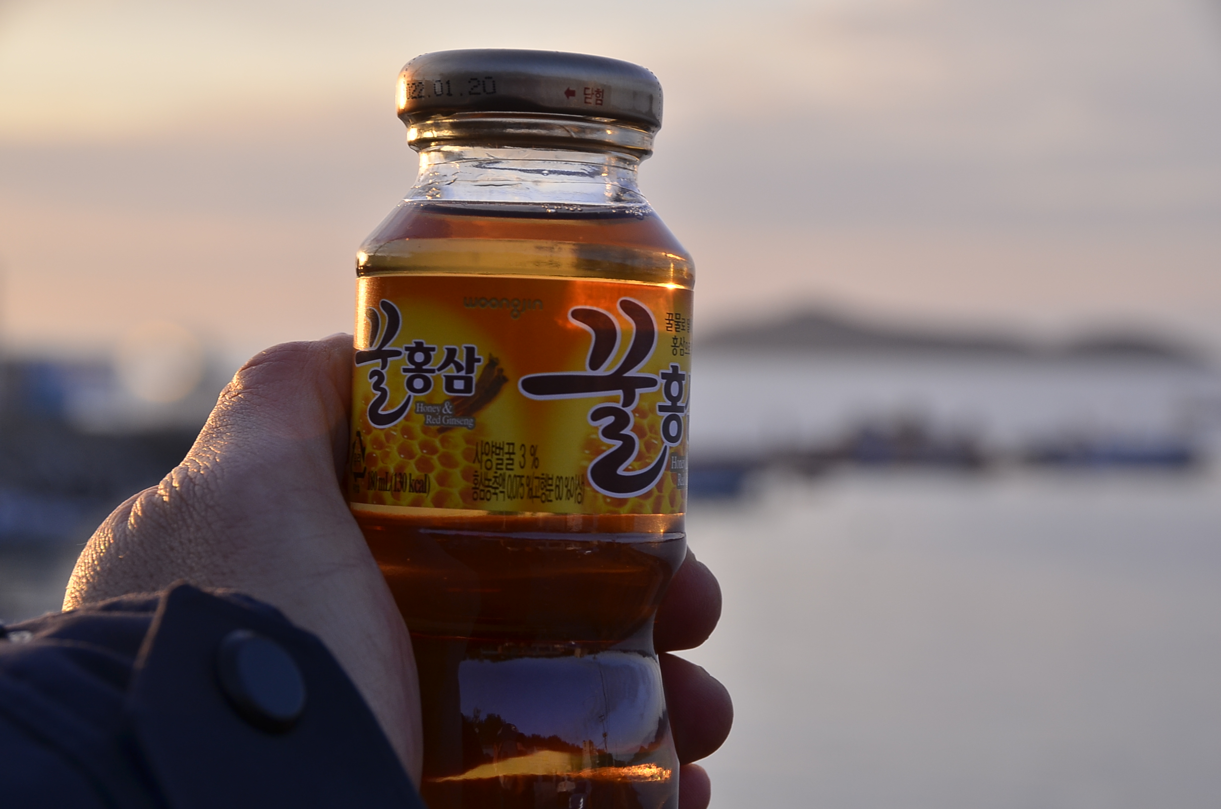 저의 손은 이미 깡깡얼어 차가워져 고통스럽기까지 합니다. 이른 아침의 사진 촬영 시 필수장비인 장갑을 챙기지 않았던 것입니다. 더 참을 수 없어 인근 편의점에서 따뜻한 음료 꿀홍삼을 구입하여 얼어버린 손을 녹입니다. 그 따뜻한 행복은 말로 표현하기 힘든 소소한 행복입니다.