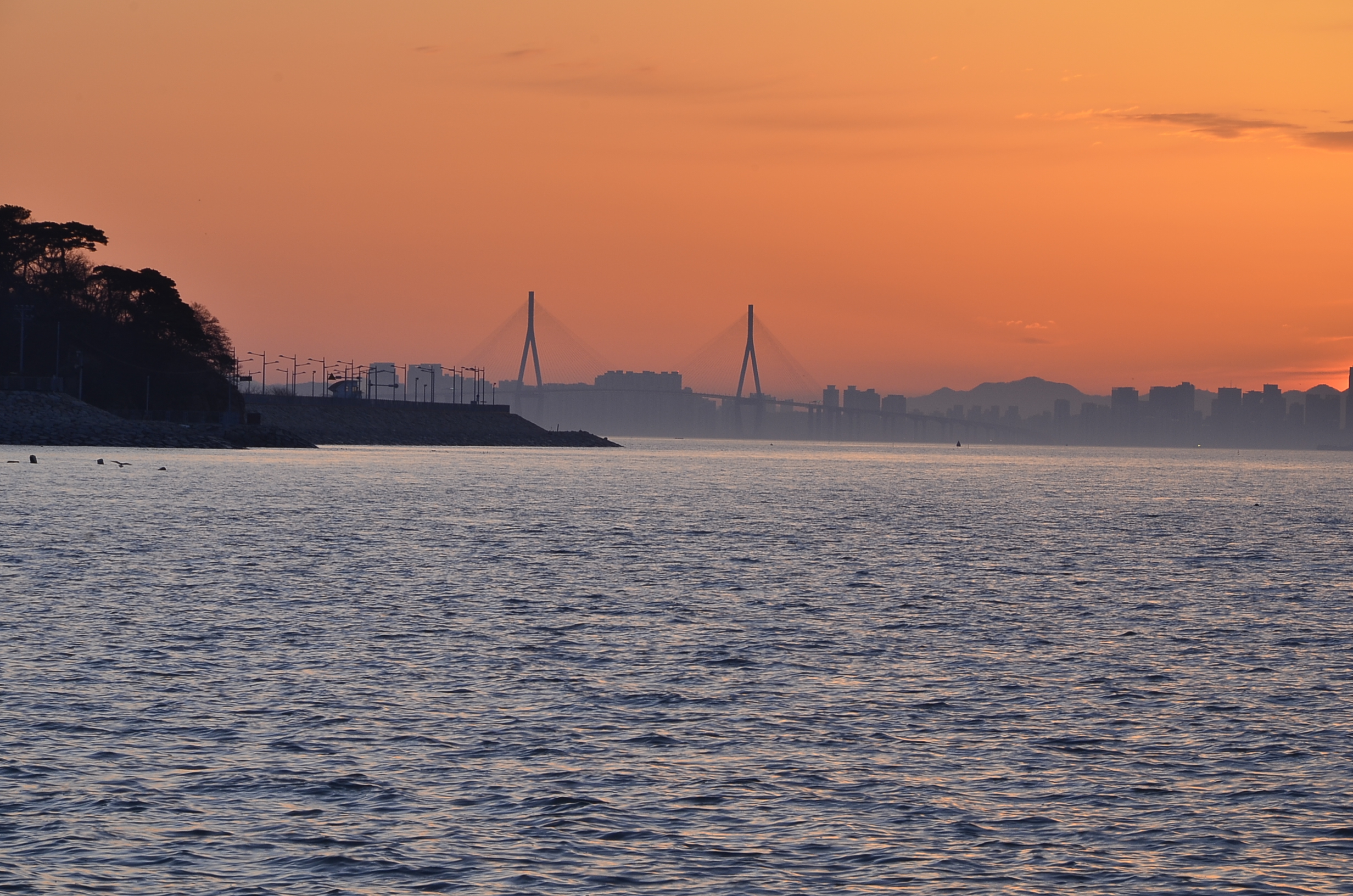 아직도 인천대교 방향에는 하늘이 붉게 물들어 있습니다.