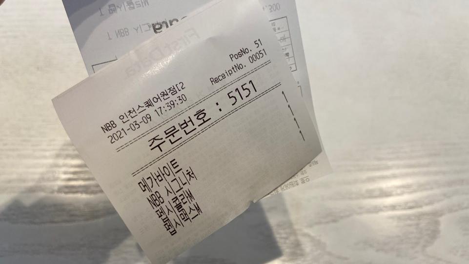 주문을 완료하고 매장 밖으로 나가 저희 주문번호 5151을 기다립니다.