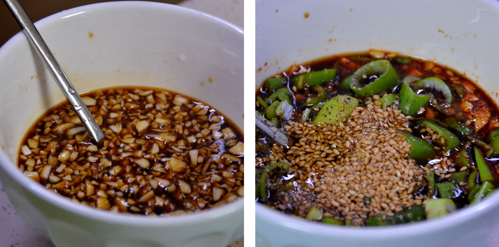 두부를 굽는 동안 빠르게 양념장을 준비합니다.