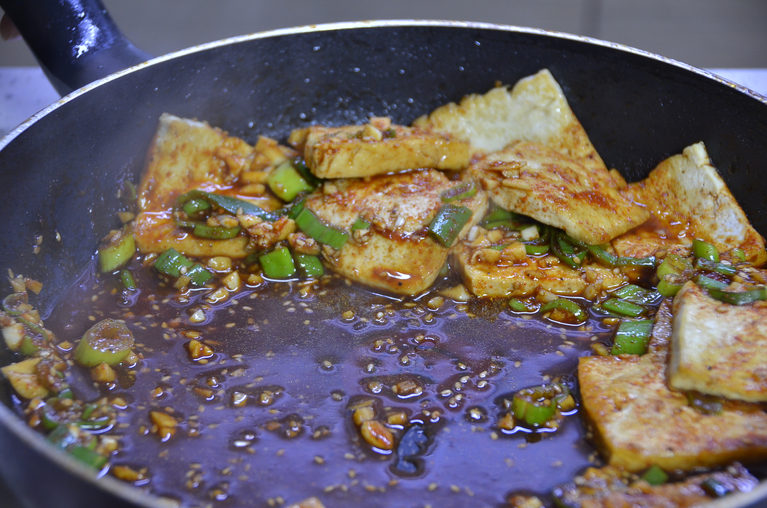마지막 단계인 두부와 양념을 넣고 두부에 양념이 살짝 베이도록 함께 끓여줍니다.