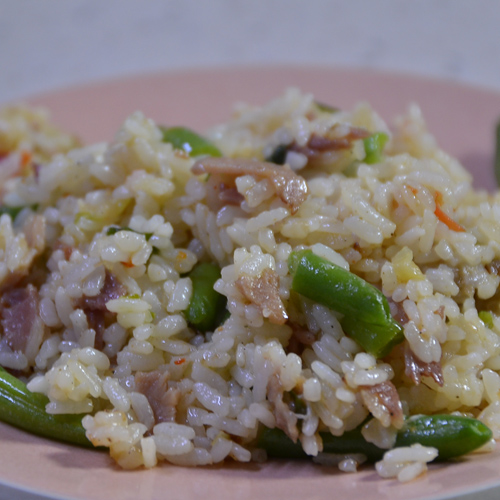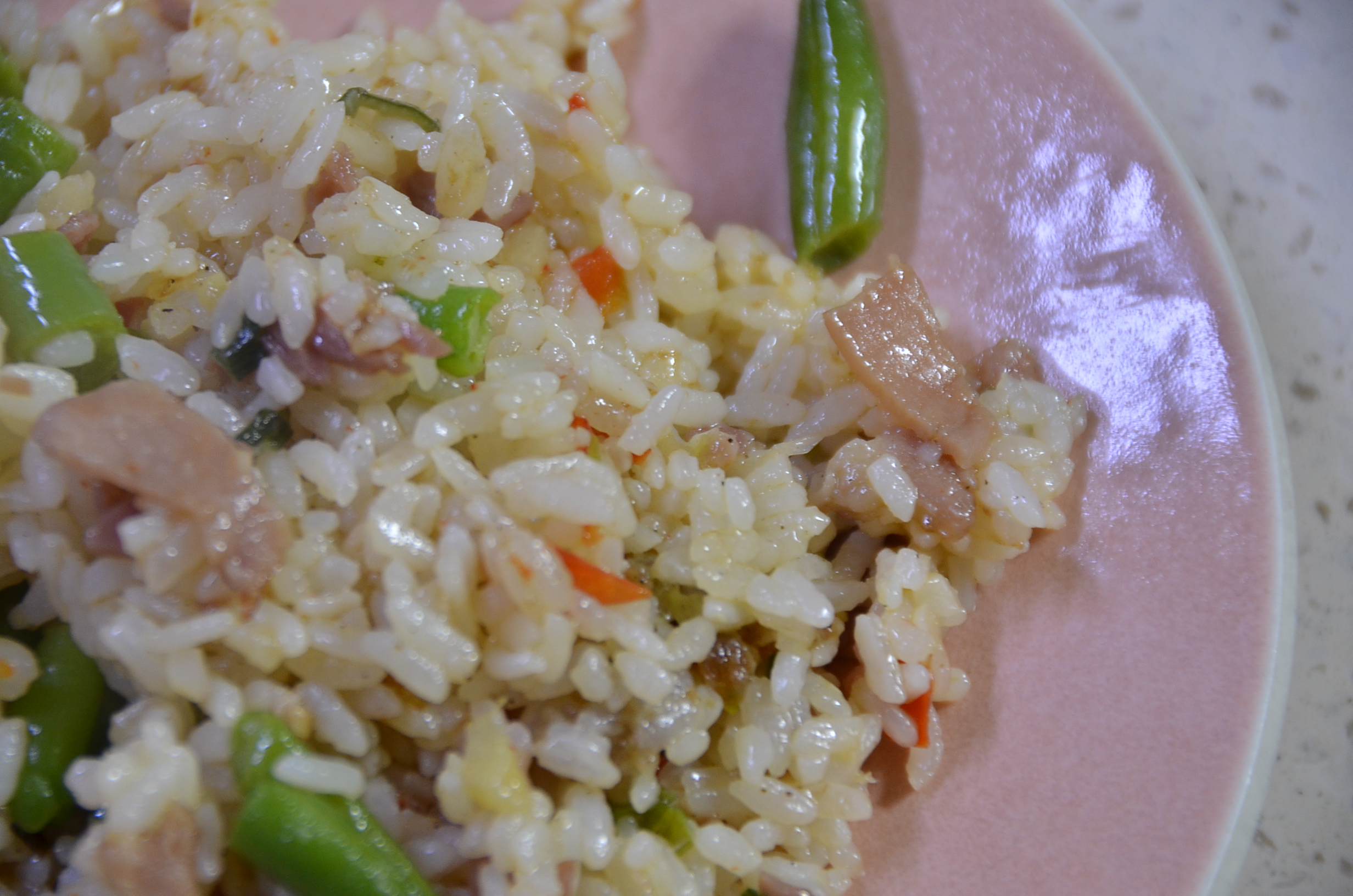 완료된 볶음밥을 접시에 올렸습니다.