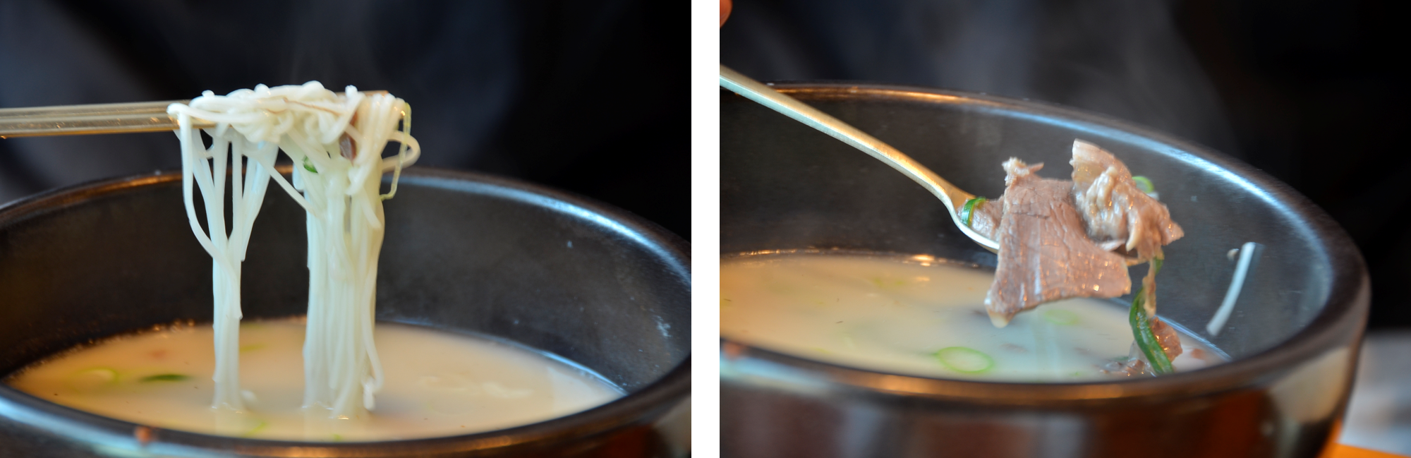 곰탕에서 올라오는 국수와 고기가 구수한 국물이 가득 베어있어 더욱 좋습니다.