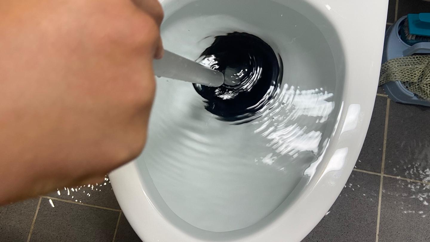 총 세 개의 탄산실린더 사용으로 끝내 성공하였으나 첫 번째와 두 번째 모두 변기 배관을 잘 압착하지 못하여 실수를 하게 됩니다. 아래 첫 시도 때에도 실패를 하였는데도 불구하고 변기가 뚫리는 일이 벌어집니다.
