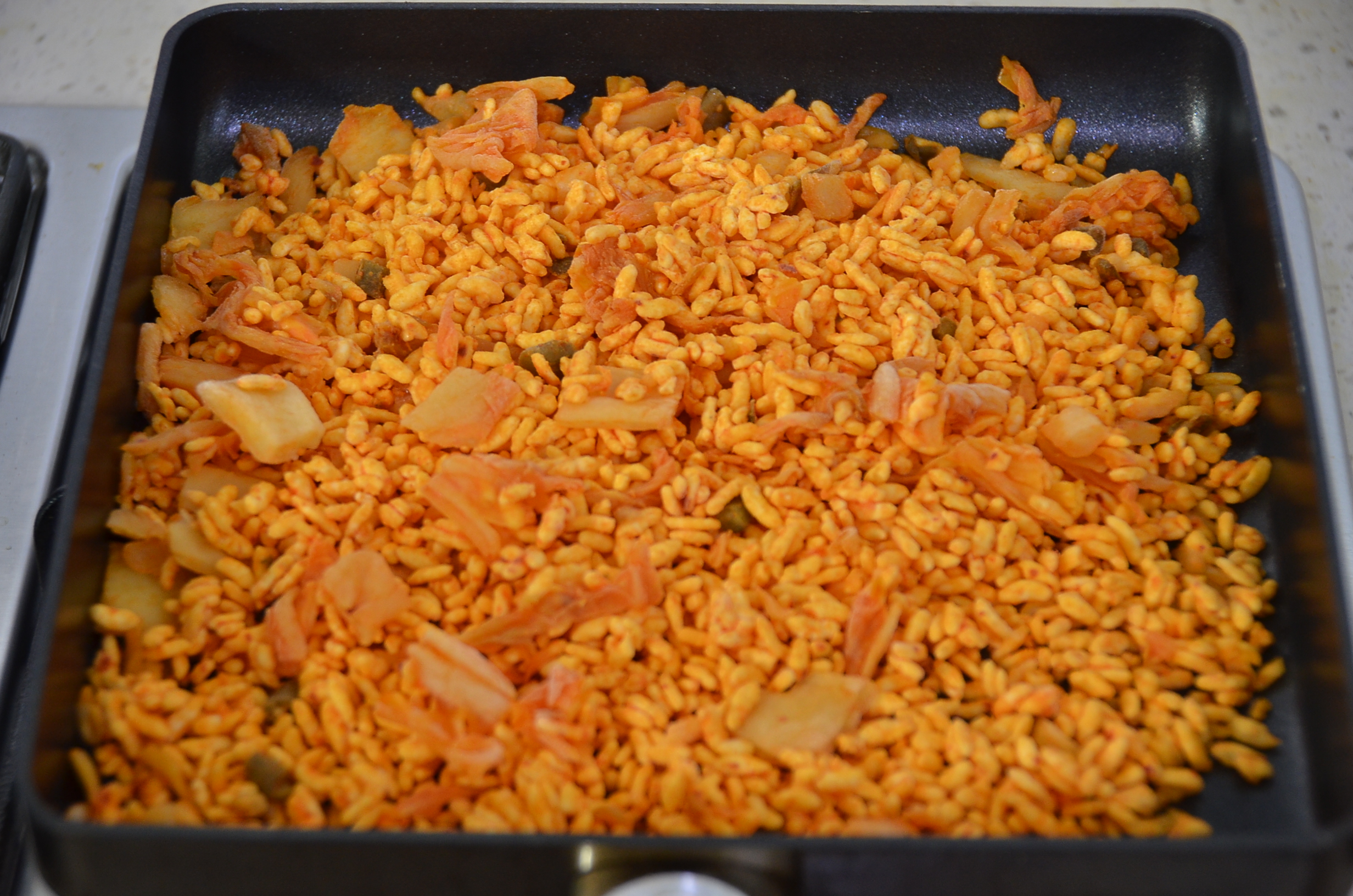 저는 위 조리법 1번 프라이팬 조리법을 이용하여 아들 김치볶음밥을 만듭니다. 봉지에 들어가 있는 밥을 팬위에 올려 놓아 보니 고슬고슬한 밥과 김치가 적지 않아 보입니다.