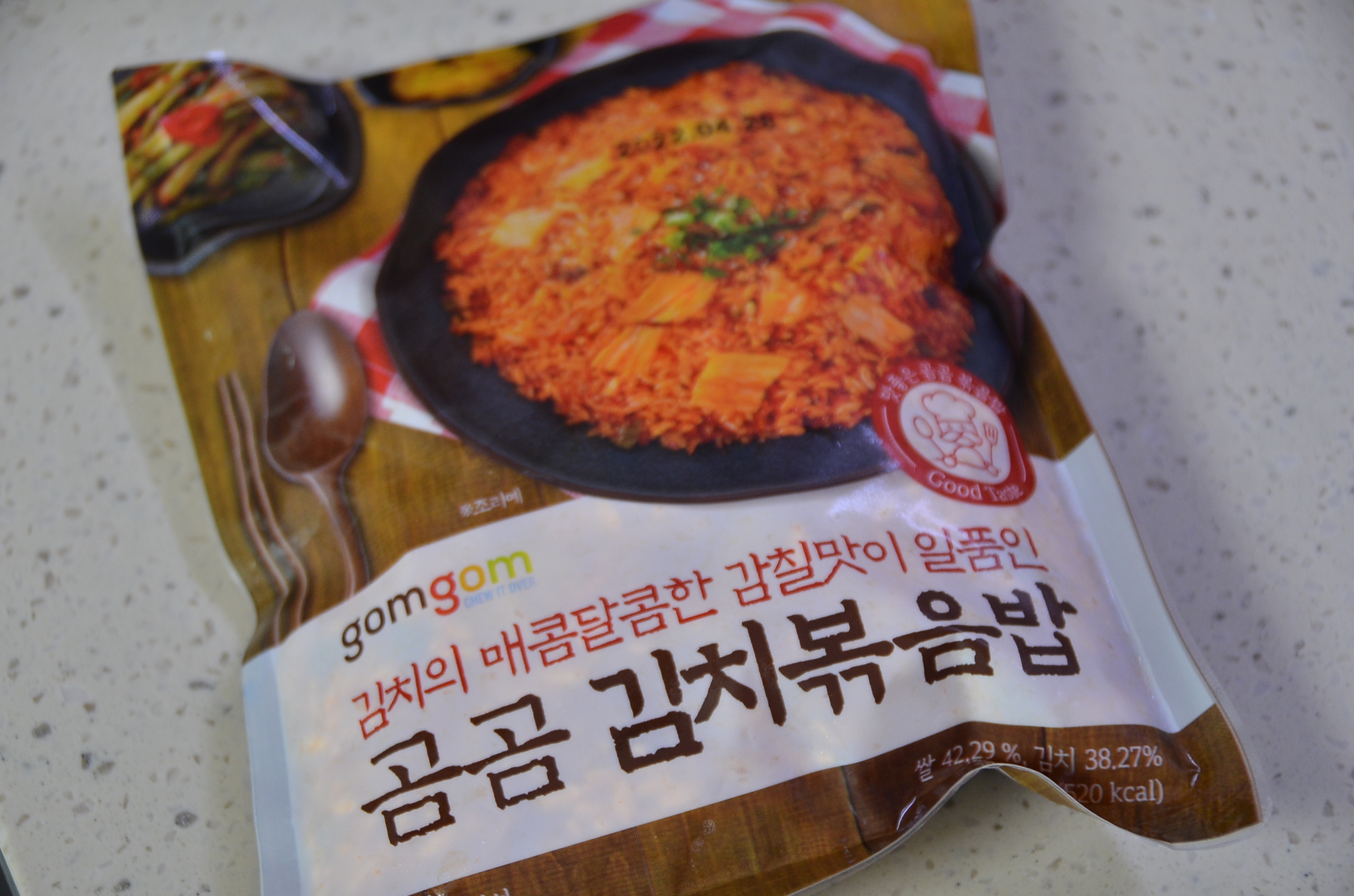 포장지에 쓰여있는 감칠맛이 일품인 김치볶음밥이라는 문구는 김치볶음밥의 맛을 대표적으로 잘 표현한것 같습니다.