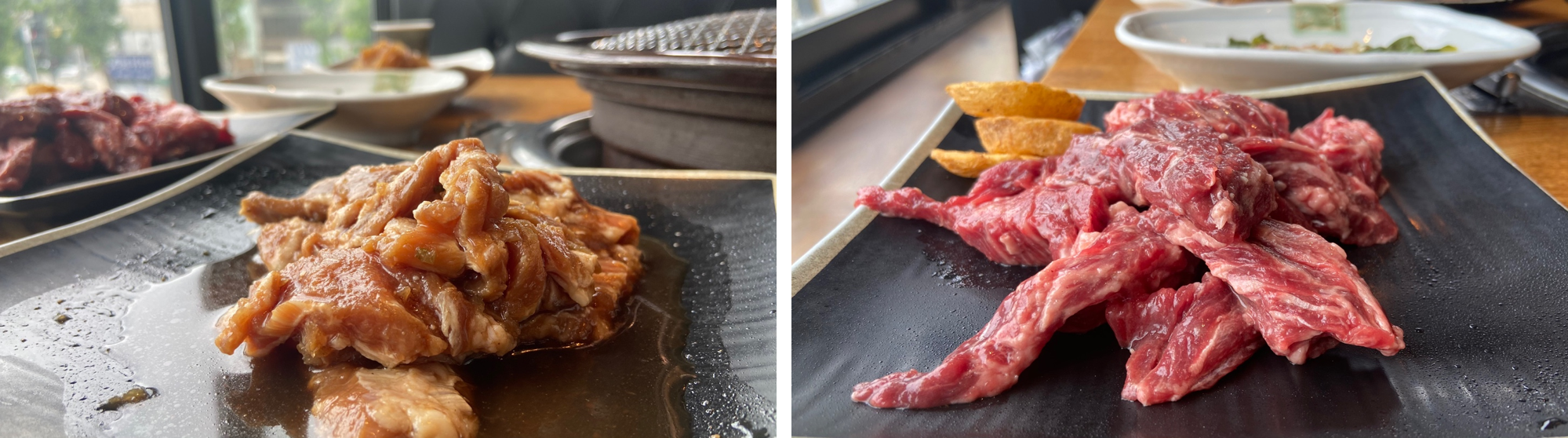 갈비살과 양념 갈비살이 함께 나오는 설화세트를 주문합니다. 계획은 입에 맞는 것은 추가 주문을 하려고 합니다. 식당 테이블 배치가 넓은 매장에 좁지 않게 배치되어 있어 좋습니다. 그리고 테이블마다 파티션이 설치되어 더욱 안심하고 아들과 고기 파티를 즐길 수 있었습니다.