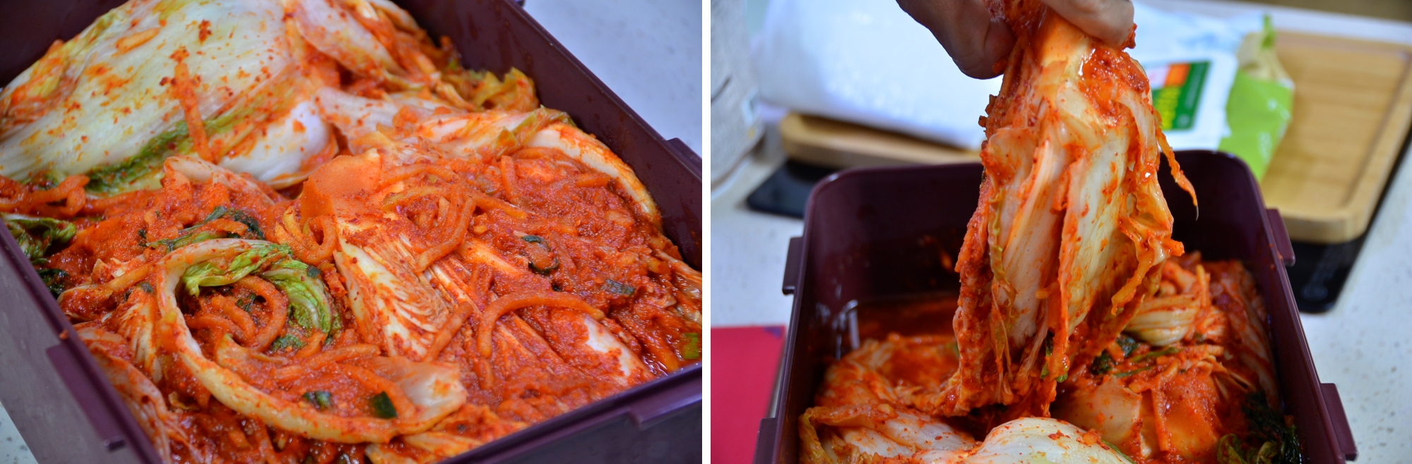 그 맛을 제대로 느끼기 위하여 신선한 김치를 보았을 때도 맛보지 않았습니다.