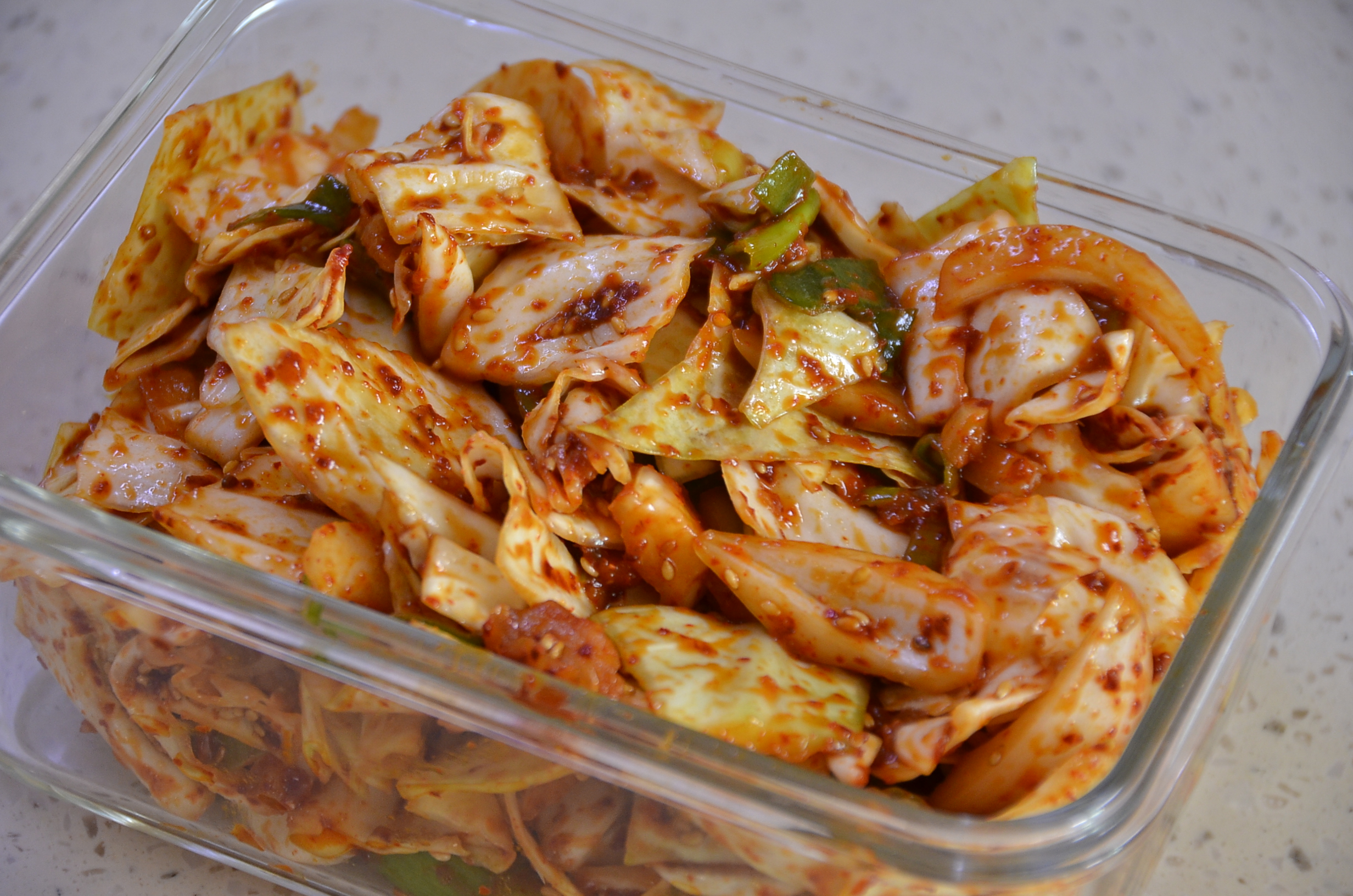 다 만들어놓은 양배추김치 모습입니다.