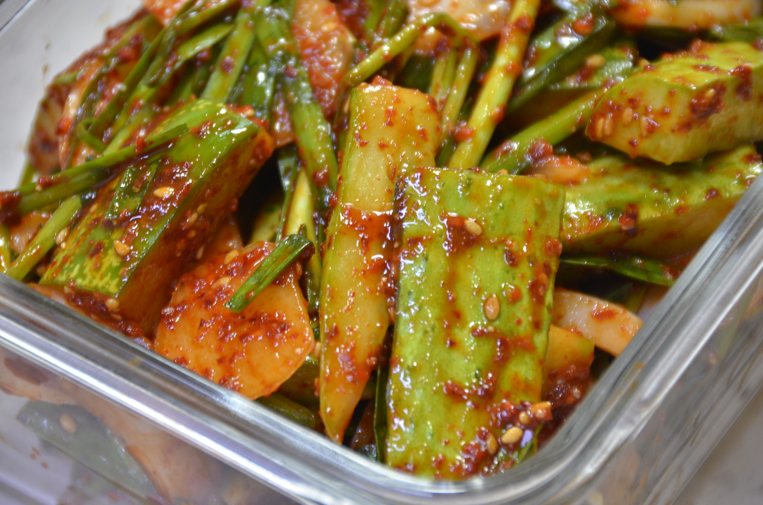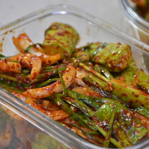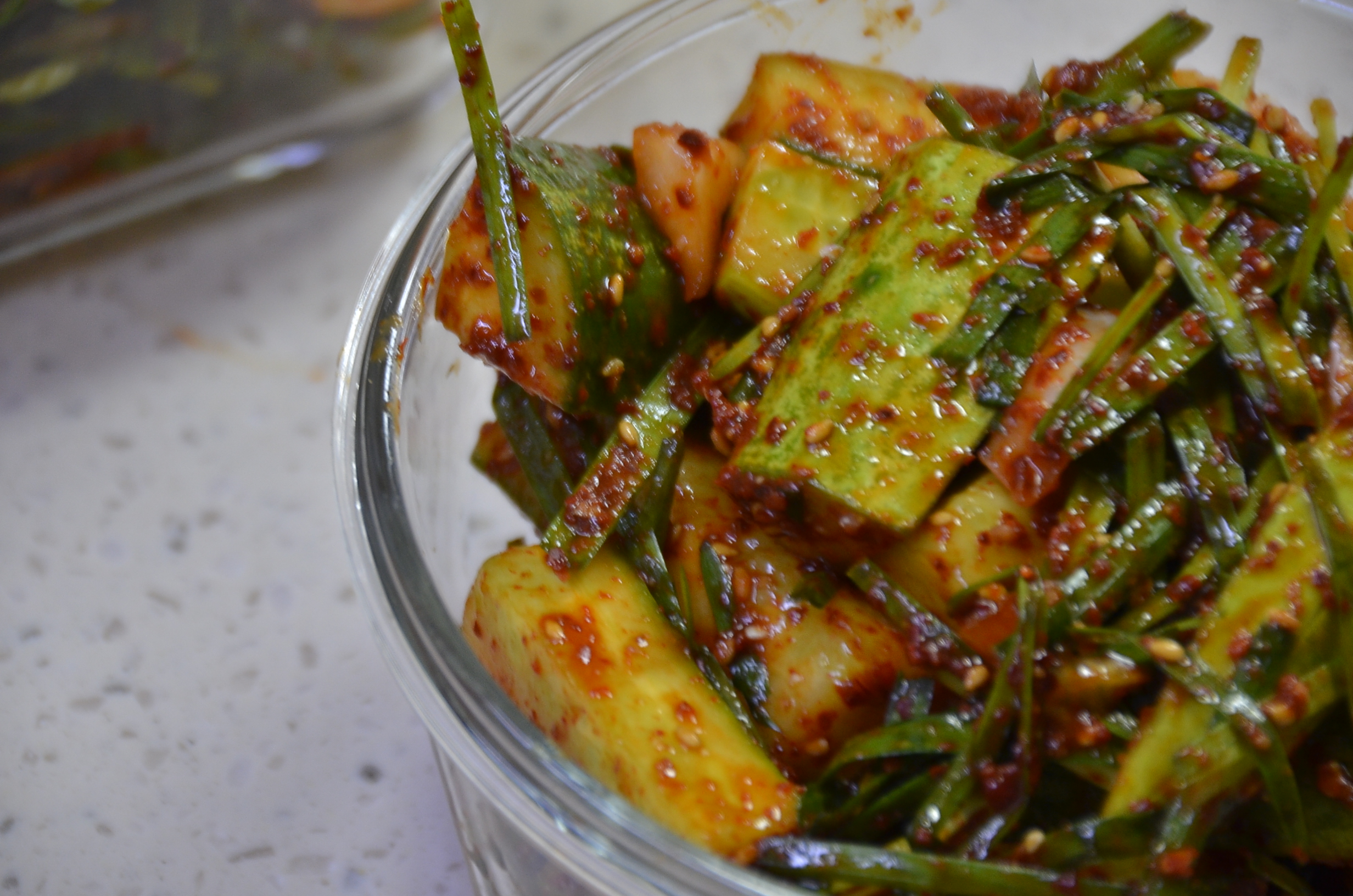 양념이 오이와 부추에 잘 베어있는것이 눈에 보입니다.