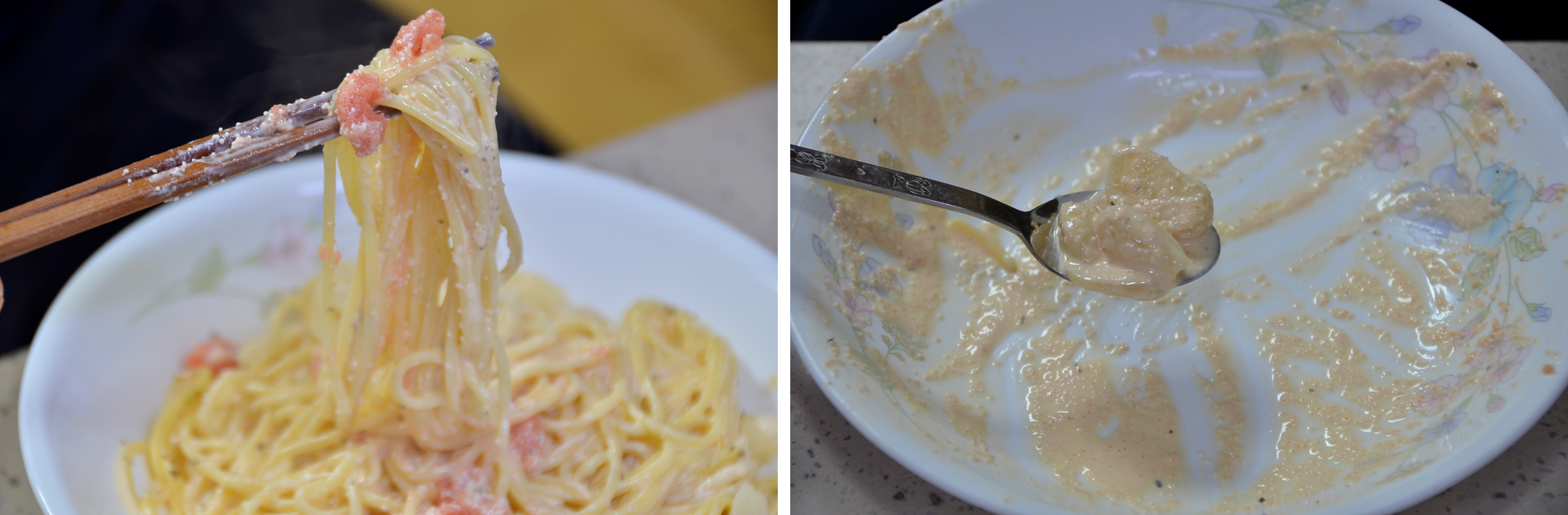 느끼한 음식 못 먹는 아빠도, 초등학생 입맛인 중학생도 감탄을 하며 쉼 없이 젓가락을 움직여 올 클리어하는 명란 우유 파스타입니다.