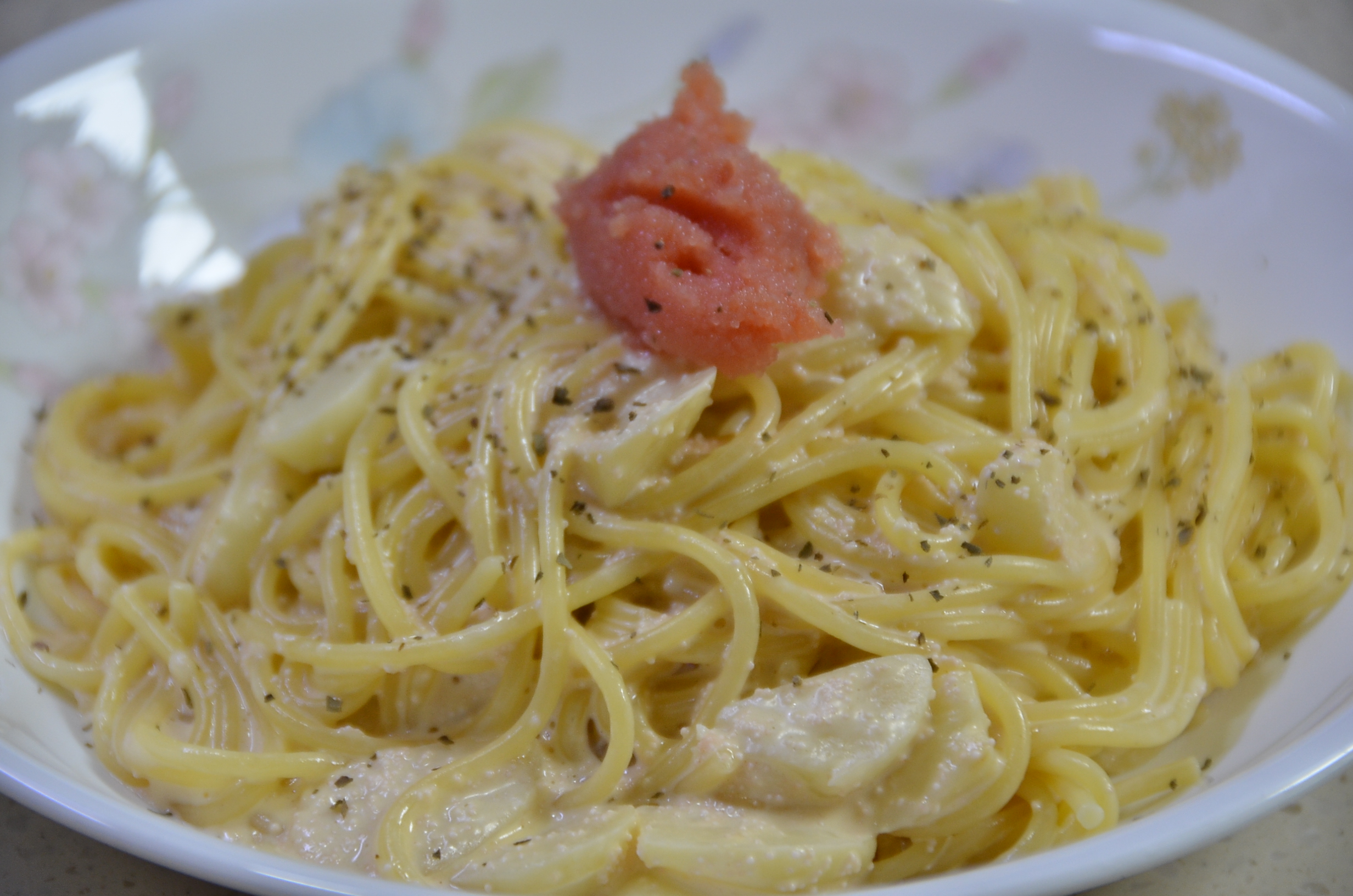 어떻게 먹어보라고 이야기해줘도 아들은 명란젓과 파스타를 그냥 다 섞어 버립니다.