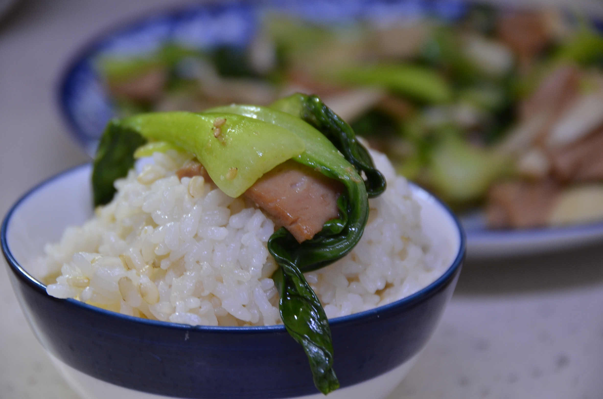 제 밥공기 위에 올라간 청경채 볶음을 사진으로 남깁니다.