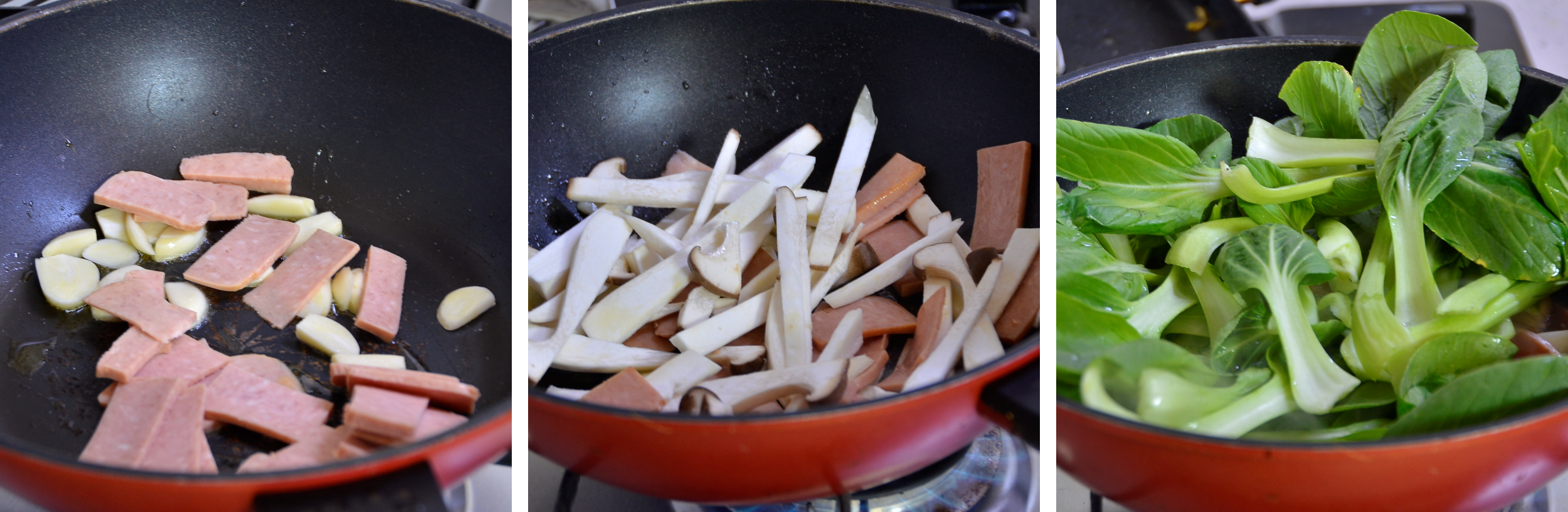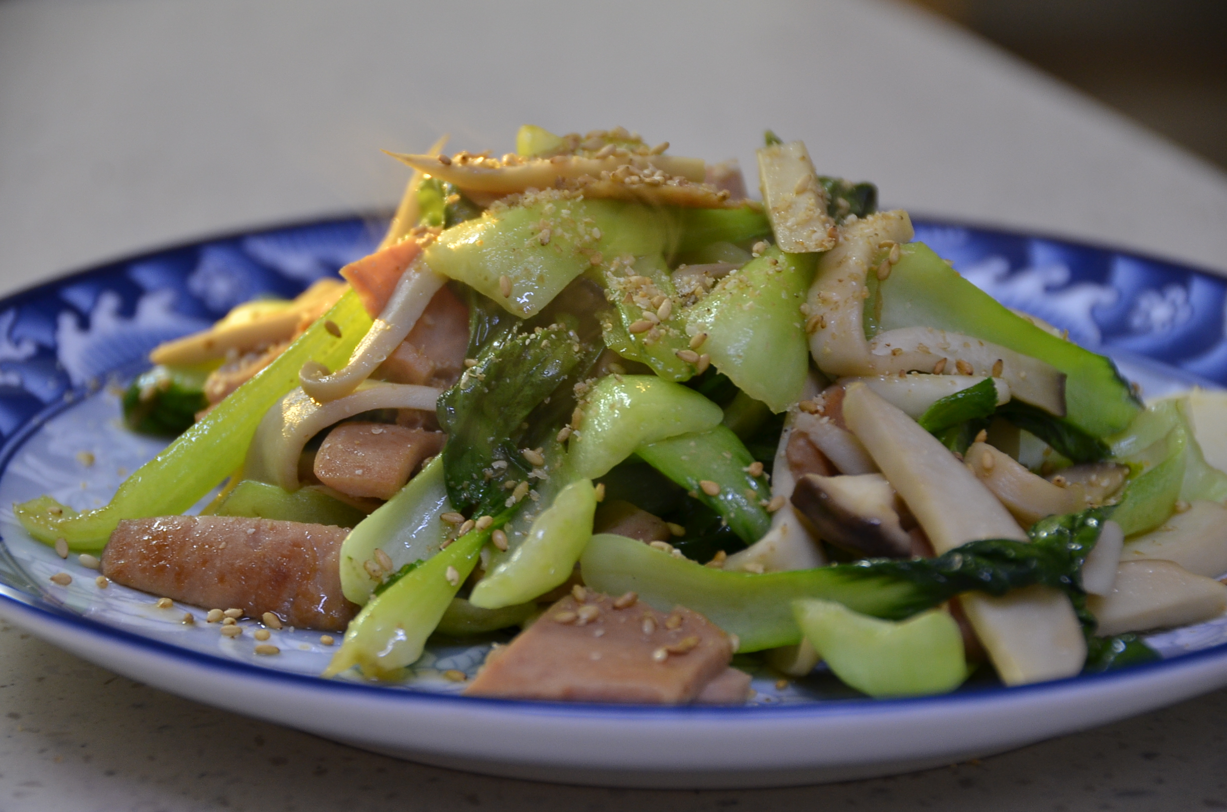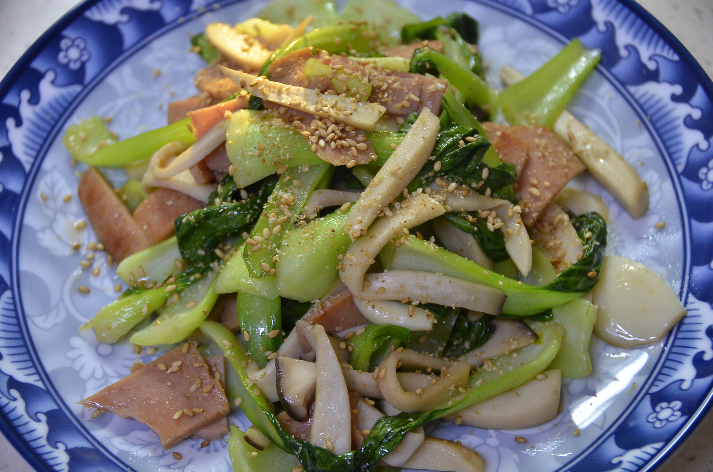 이것이 바로 입맛을 사로잡는 퓨전요리 스팸 버섯 청경채볶음