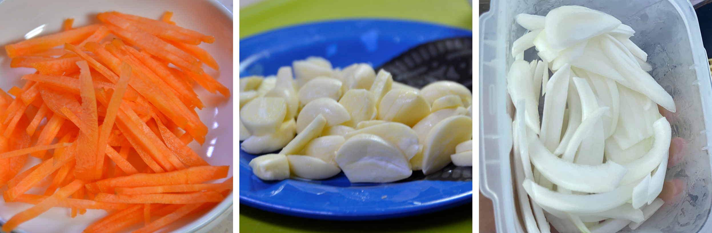 당근과 양파 그리고 마늘을 준비합니다.