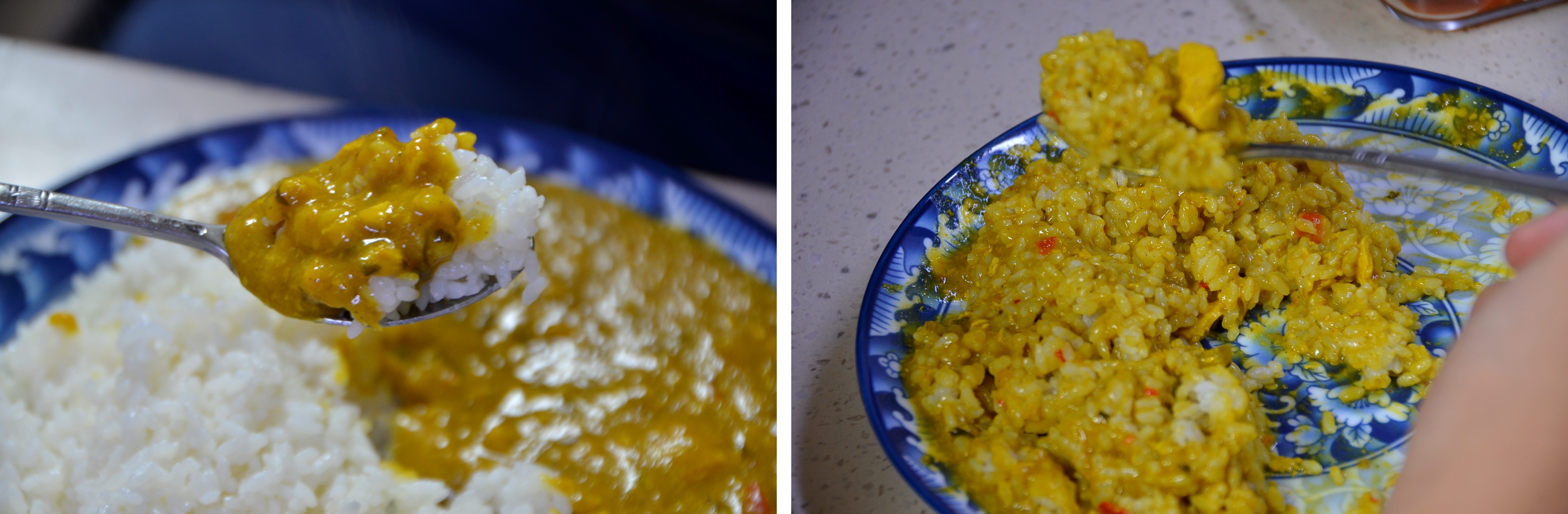 맛있게 먹는법은 카레를 비비기전에 밥과 함께 떠먹어 보기도 하고