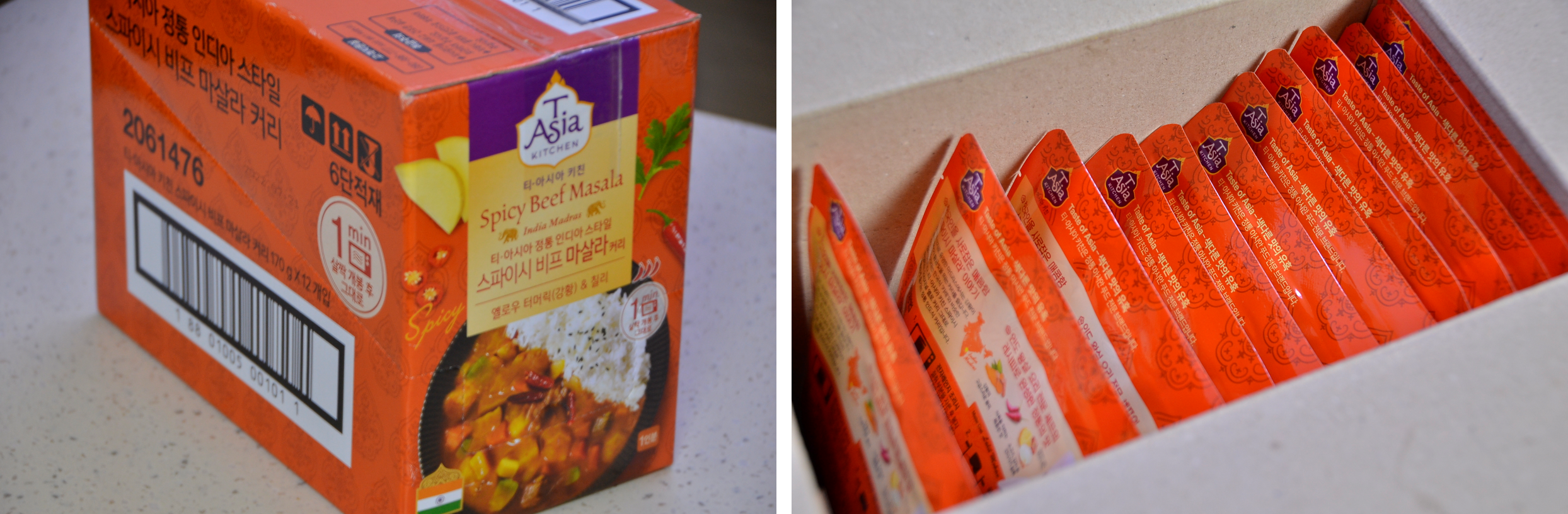 그중 특히 아들이 맛이 좋았다고 했던 매운맛 소기 커리 스파이시 비프 마살라 커리 12개 들이 박스를 추가구매 합니다. 당분간 요리하기 힘들때 아들의 입맛을 걱정할 필요가 없어졌습니다.