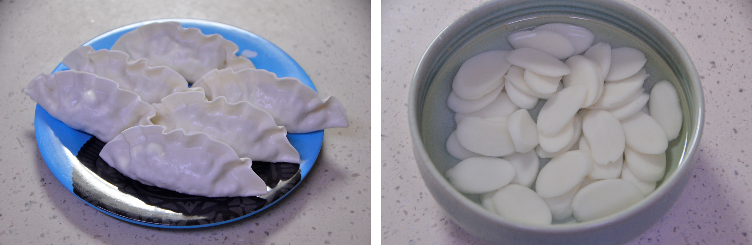 주 재료인 떡과 만두입니다.