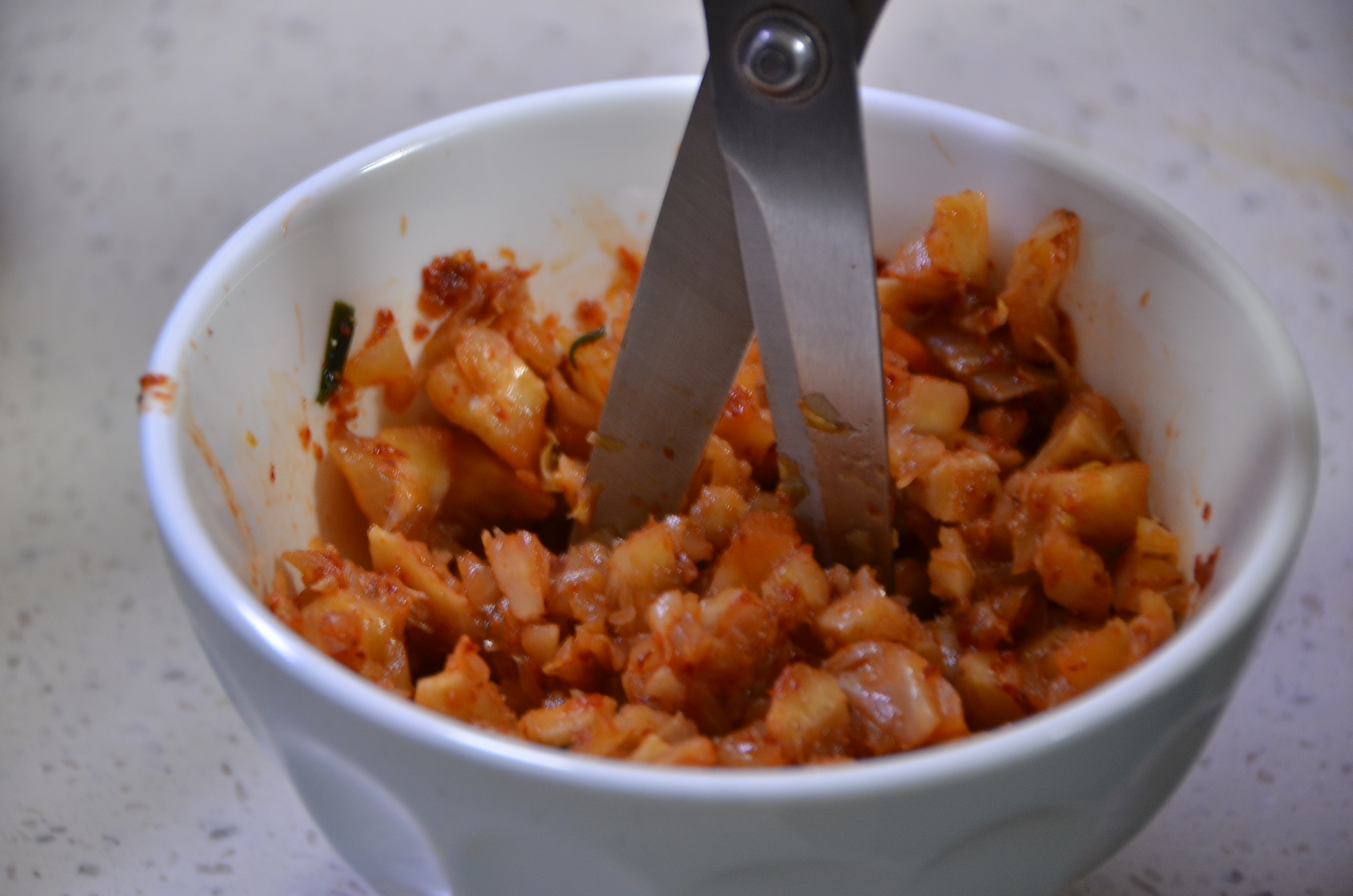 저는 김치찌개 특히 김치 꽁다리를 자르는 일은 아들을 시킵니다. 어렸을 때부터 하여 아들 녀석은 김치 꽁다리를 식 가위를 이용하여 잘라주는 일에는 저를 능가합니다.이렇게 하며 아들과 함께 요리하는 즐거움을 또 하나 만들어 갑니다.