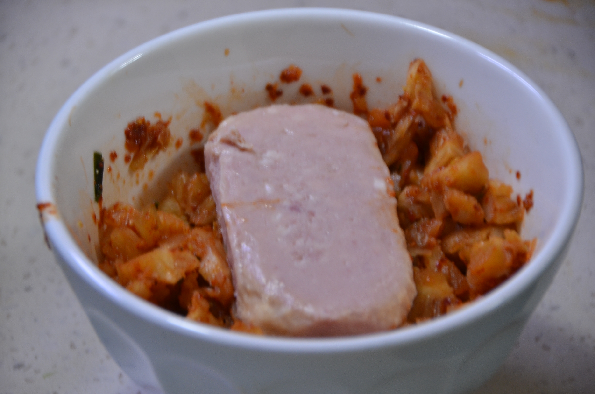 김치만 넣으면 심심할 수 있으니 최강의 조미료이자 김치찌개의 영원한 파트너인 햄을 넣어줍니다.