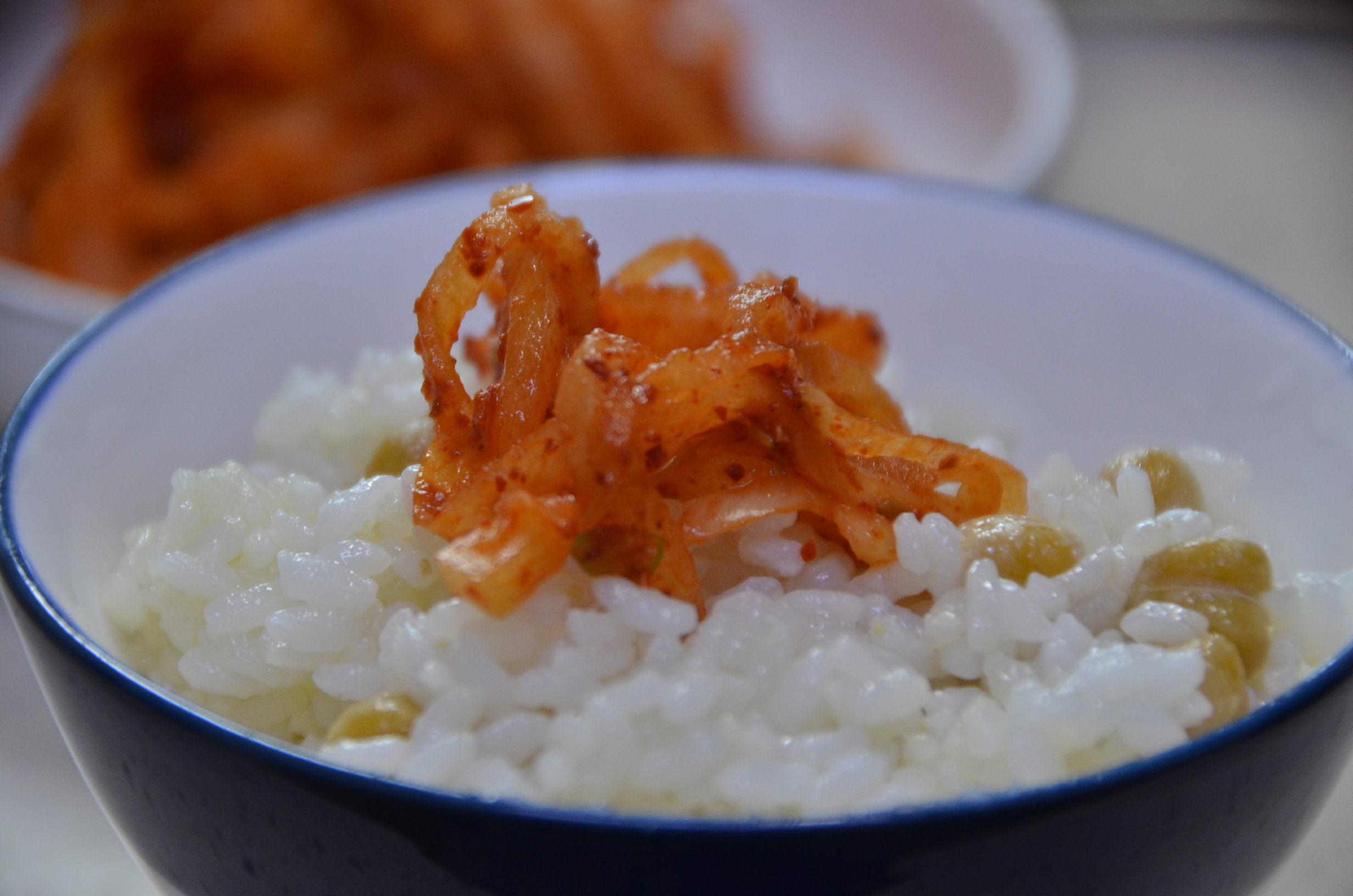 밥 위에 무채를 올려 먹으니 그 맛이 참 좋습니다.