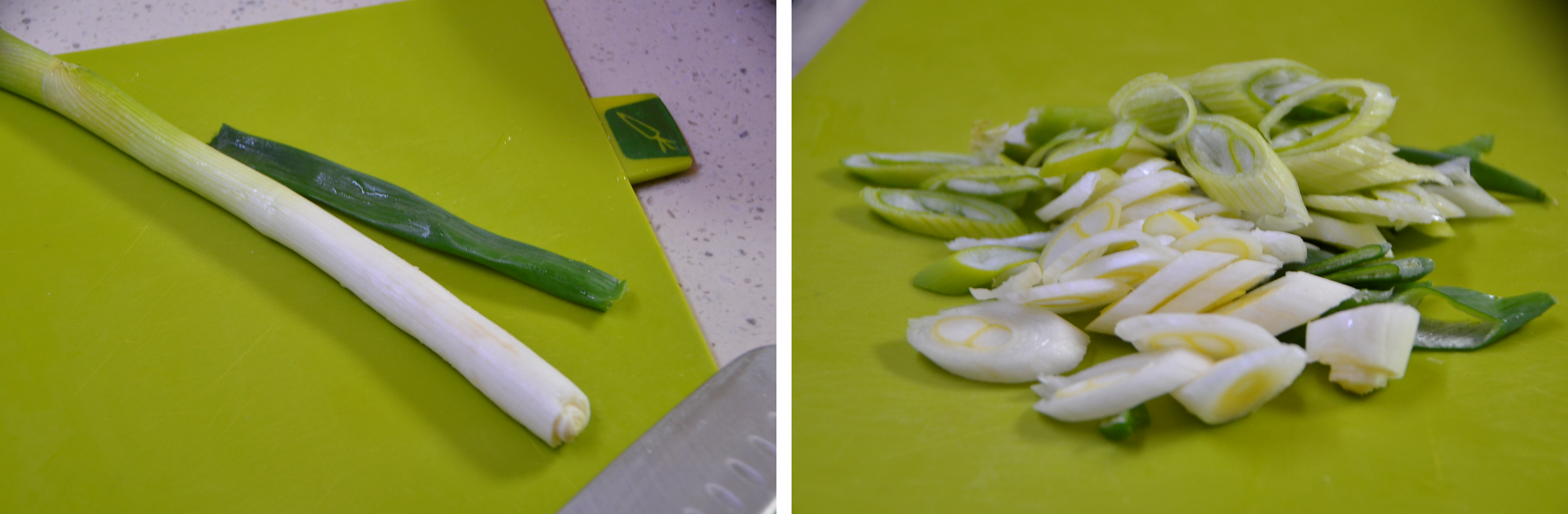 냉장고에 있는 파를 먹기 좋은 크기로 썰어서 준비합니다.