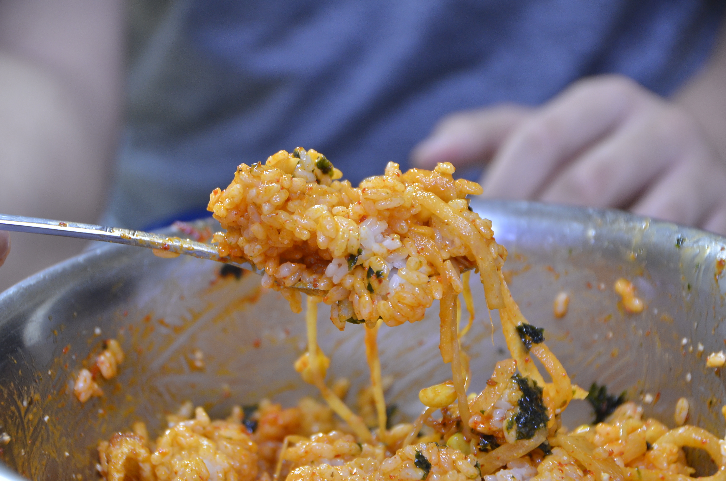 큰 양푼에 비벼 넣은 밥이 적지가 않은데 어느 사이 비워지는 마법 같은 비빔밥입니다.